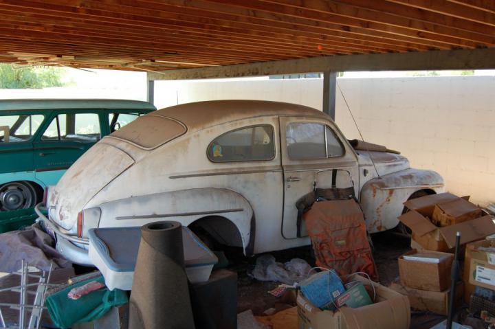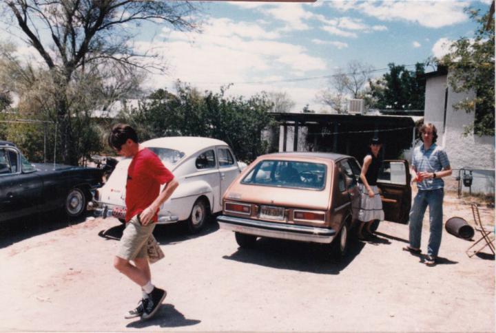 My twin brother David had an Opel in the early 80s, which he wrecked coming down from Mt Lemon in 1984. He needed a car, so he got the Volvo from my dad, and drove it for quite a while. By 1994 it was tired, so I got to fix it. I got another parts car, this one a 1969ish wagon, from a friend who ran a machine shop. The engine was out and apart, but it was the later bigger B20 model, and we decided to hot rod the old 544 by adding 200 CCs displacement. I gave the B20 engine a complete rebuild, and David soon swapped the Su carbs for a single Weber 2bbl, which is on it now. He drove it off and on for several years, then decided to fix the brakes about 10 years ago, and there it has sat since.