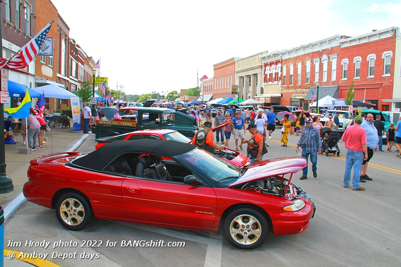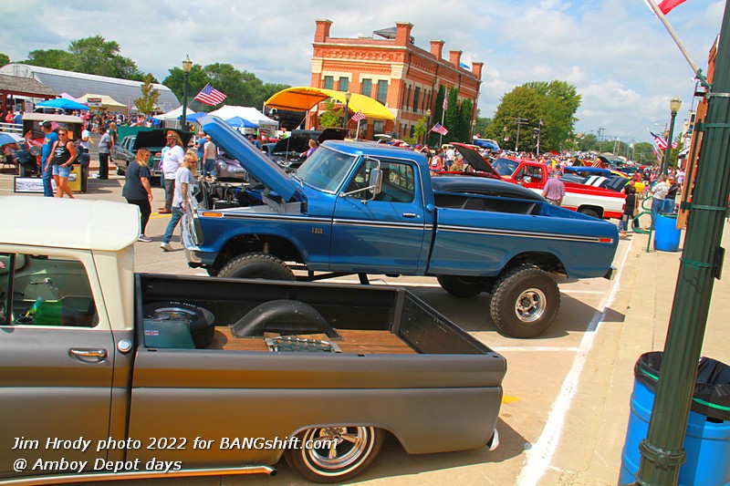 (Words and Photos by Jim Hrody) Amboy, IL is about 100 miles west of Chicago. Every August the town has its ‘Depot Days’, and on the last day of this festival, a car show takes place. The ‘depot’ part of the name comes from the history of the Illinois Central Railroad once being headquartered there. I haven’t seen an official count, but by my estimation, there were around 400+ cars, trucks, and motorcycles lining the streets. The town was established in the 1850s, so there are plenty of old buildings backdropping the vehicles. One notable point is that they have a widely known 50/50 raffle, and this year the winner took home over $99,000!