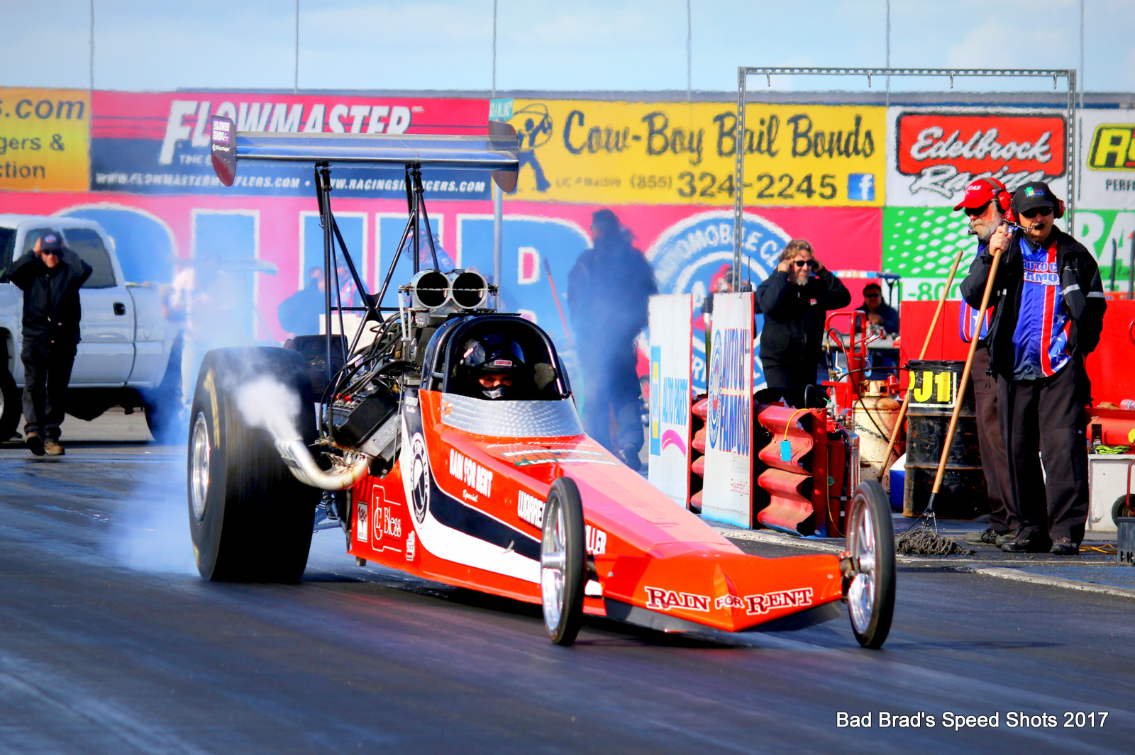 (Photos by Brad Klaassen) – We’re back today with some more nitro photos from the 2017 Good Vibrations March Meet. Brad Klaassen was out there with his buddies running a car and he also had his picture taking machine with him so when the time came he hopped out trackside and blasted photos of his favorite stuff. In this case that’s funny cars, top fuel dragsters, and fuel altereds.
