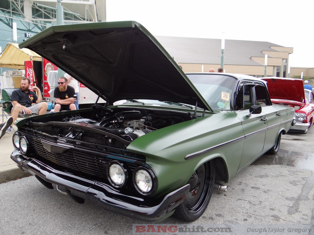 (Words and photos by Doug Gregory) – The Street Rod Nationals are not your typical event. It is a cruise-in sort of thing, but there is a show. Your car isn’t judged unless submitted for it. Cars are driven into the event, but a good number are trailered to the local area. Most are home-built rides, but there are plenty of pro-built rides to get ideas from. There isn’t any racing, but that just lends itself to the laid-back atmosphere. The event is typically the first weekend in August so its usually hot and humid, but the Exposition Center is massive and well-cooled. Having been to events all over the country I can tell you the KY Exposition Center is one of the best forums to host an event like this. Its an almost park-like setting and there isn’t a bad spot to sit and watch cars rumble by.