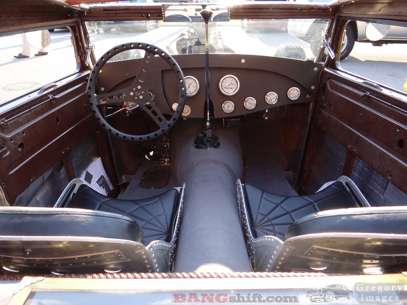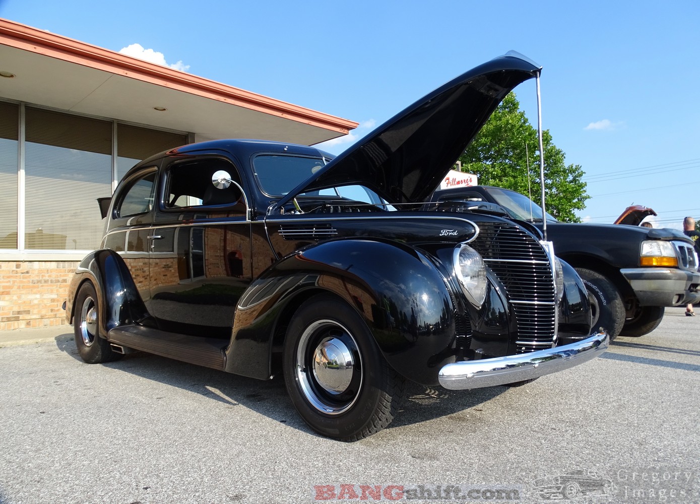 (Words and photos by Doug Gregory) – We happen by Filmore’s Dairy Hut on Sunday events while coming home from events such as Gravelrama, the Ohio Mile, Lawrenceburg Speedway, or Edgewater Dragway. Ray Dowers is the DJ (Cruizin with DJ Ray sponsored by Haag Ford) and the event draw an eclectic mix of machinery. We’ve brought you some of this stuff in the past and as long as there are new and interesting things showing up there we’ll keep doing the same. It’s no secret that I drive and own GM stuff and most of that is Chevy. This doesn’t mean I don’t like other stuff. In this gallery there several photos of a ’38 Ford Tudor showing it well-before it was completed and a few once it was finished. The flattie in this thing sounds like few others and has a lope some race cars would envy. The whole thing is done quite well and we had to try hard to keep our drool off of it.