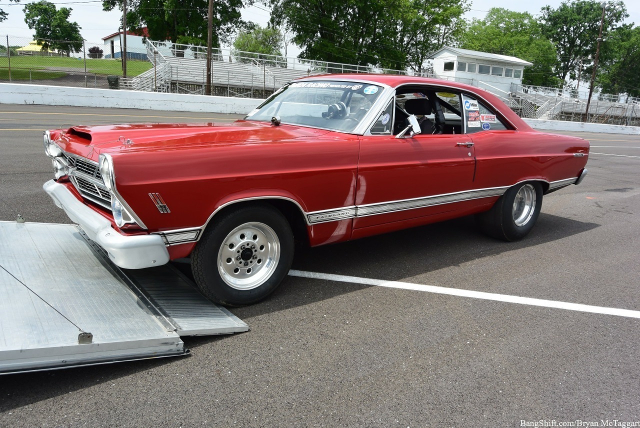 Bowling Green is ripe with the sounds of race cars! Mother Nature has finally finished up with her week of temper tantrums that have included tornados, massive amounts of lightning and deluges of rain, and the sun is coming out just in time for the NMCA/Quick Fuel Technologies Bluegrass Festival. We are looking forward to the action, because there is going to beĀ plenty of it, old school and new. In addition to the swap meet area, a manufacturer’s midway, meet-and-greets (among which are Scott Taylor and his “John Doe” 1992 Oldsmobile Cutlass from “Street Outlaws” and Brandon Smith and the “LSKilr” Terminator Mustang from “Street Outlaws New Orleans”), there are several classes of good, solid racing that offers up something for everyone. Pro mods, Nostalgia Super Stock, and True Street will offer up plenty on their own, but we are waiting to see what the other two categories offer up: the Holley EFI Factory Super Cars class is where Drag Pak Challengers, Cobra Jet Mustangs and COPO Camaros will line up and slug it out, and the MX235 Series presented by Redline Motorsports, which will bring some nasty 1/8th mile small-tire cars out of the woodwork for heads-up laps. We trolled through the pits early this morning as everyone was pulling in, setting up their pits, and getting their gear sorted out, and managed to catch some of the first cars out and about as they warmed up and hit the scales for their weight. If you’re local, get here…this weekend’s racing is going to be absolutely bitchin’.