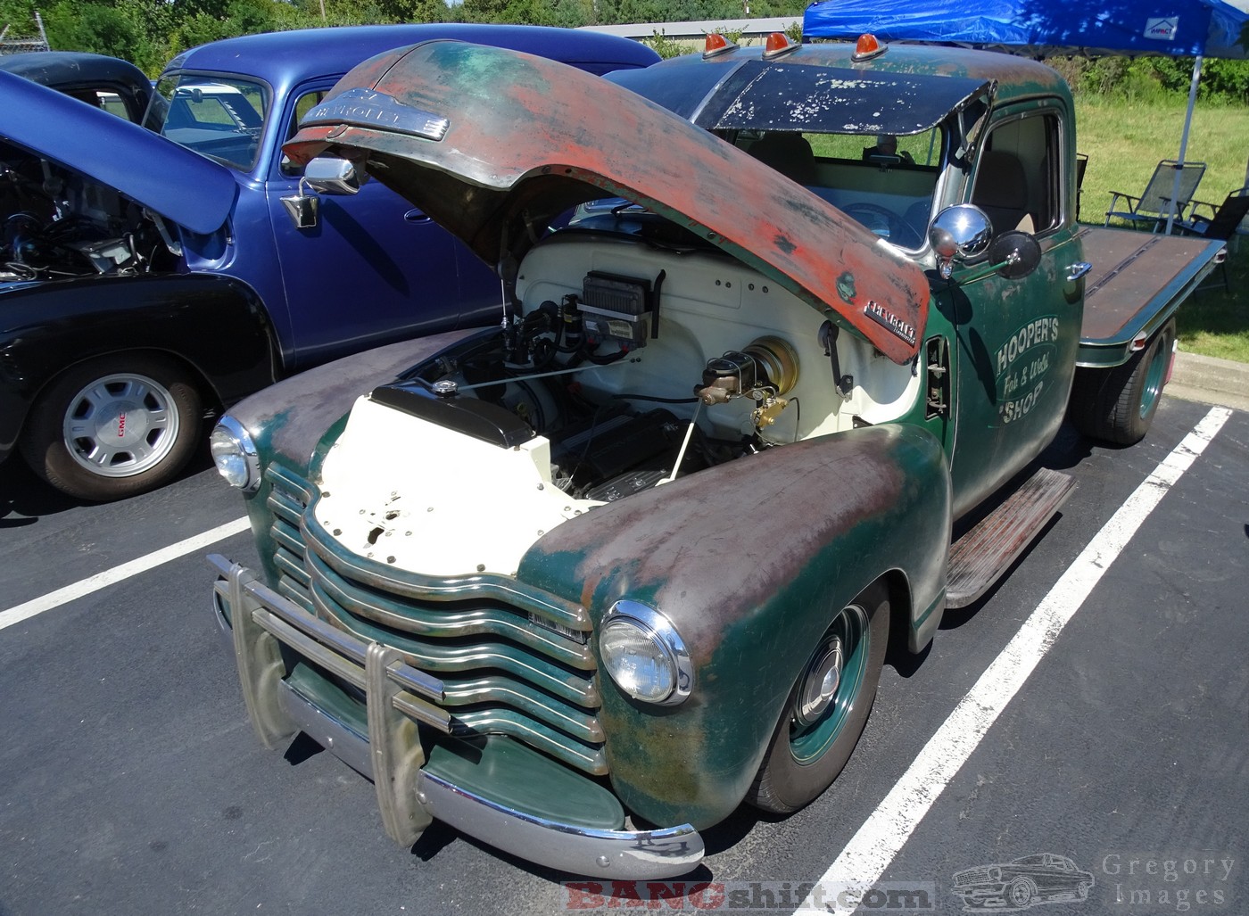 (Words and photos by Doug Gregory) – Haulin stuff. Wagons, pickups, panels, and deliveries. Lots to talk about in this one. We like a good clean ‘60s Ford F-series and the one heading up the gallery is top-shelf stuff. So much like the rolling stock on this. Another fine example is Travis Coomer’s slightly less-detailed 60s F-series that is sporting its 4th set of wheels I’ve seen on it since I first spotted years ago. It gets driven everywhere which makes it 100% legit and cool. The blue scalloped Galaxie Wagon was super and easily missed if folks didn’t walk down every parking lot. The event is held on Contract street in Lexington, KY which is a small industrial park. Most of Shelby’s Speed & Custom’s neighbors support the event and have their parking lots empty so the hotrods have plenty of room to gather.