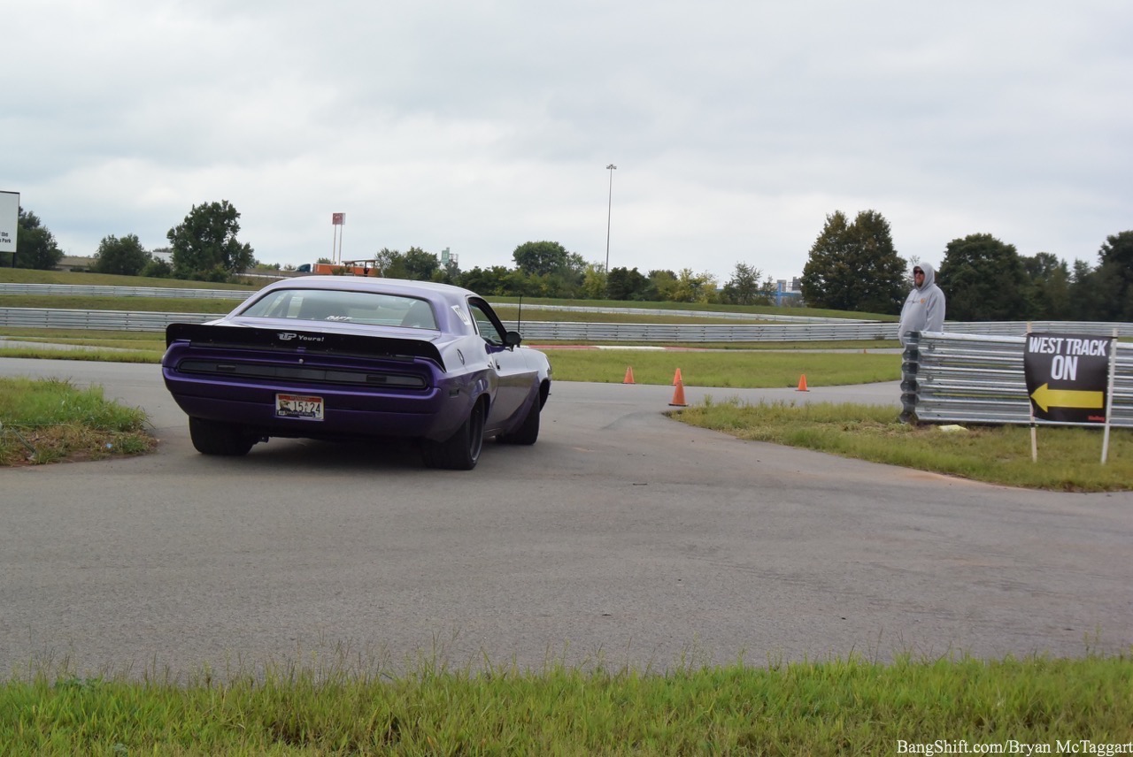 One half gets cone gates and routes, like an autocross course, to break up the racing line and make driving a little more fun for the racers. It only took four minutes for the first victim to appear, a fourth-gen Firebird that oil-starved in a corner. After the car was drug off of the track, the owner fired it up and a monster rod knock told the tale. But not all was bad news…not at all! After yesterday’s track flooding, the competition aspect was removed and the second half of the track was opened up for fun runs, allowing participants to see the Corkscrew-like Sinkhole corner. Take a look at some of the players that braved the cool morning air to come out and play below!