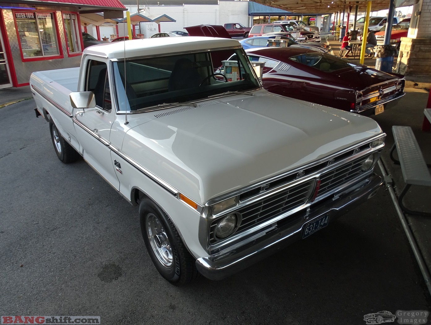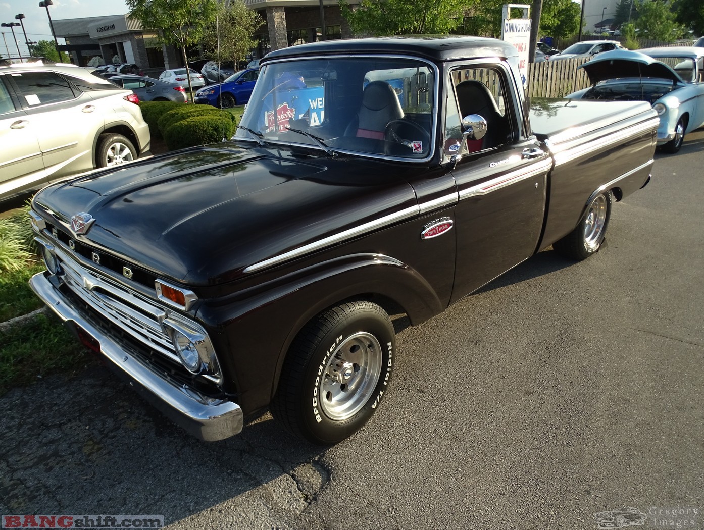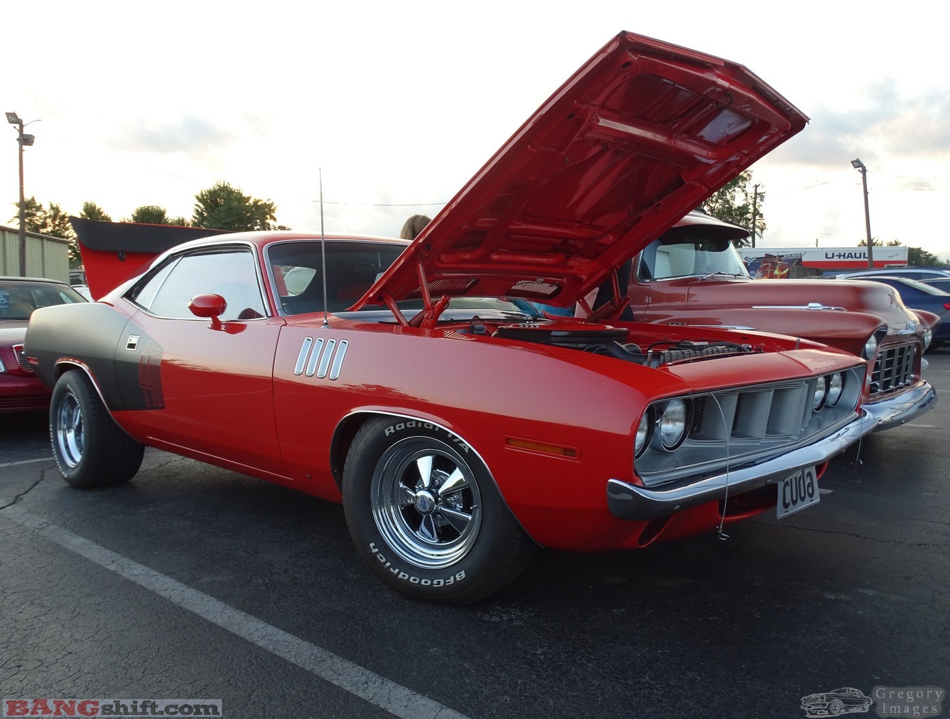 (Words and photos by Doug Gregory) – After having taken some more time off from visiting car events we find ourselves at the world famous Parkette Drive-in on New Circle Road in Lexington, KY. They have a monthly cruise organized by Richard Wilson that draws a good number of cars that come in and park and many that roll through. One of the best parts of having a cruise here is the food. This place has the atmosphere and décor to make it a very pleasant experience. Each cruise-in has a car-hop’s choice trophy that this year went to a very-deserving, purple Plymouth Road Runner.