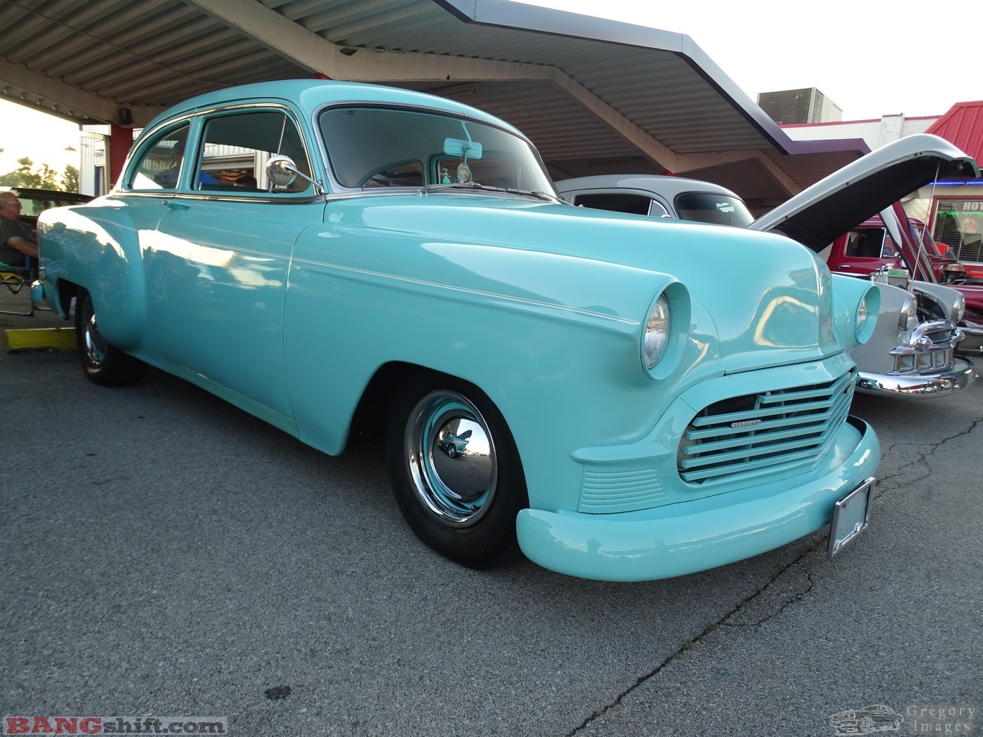 We rarely see 1st-gen Lightnings any more so this example dressed in white was a treat. We are a sucker for cars with three pedals and this black, pro-touring ’69 Camaro and the bright red Chevy II next to it both sported row-your-own sticks. The white Ford ‘Trailer Special’ was super clean and appears to have undergone a restoration. I was familiar with camper specials, but could not recall ever seeing a trailer special. The root beer shaded Bug is super cool and though I tried just could not get a shot to truly show how good that color looks on this car. Porthole Buicks are so classy and this couple were about to escape the parking lot when I got them to stop for a shot. I want to take photos of everything I can, but I also like talking to people so many slip past as I meander through. I finally got a pic of the red drop-top Merc when people stopped mobbing around it. It’s for certain a looker. I admit to not being up on import powerplants. This more-door Corolla is sporting a 20-valve 4G. The engine is mostly stock with a tune and the car is wicked quick. These things come with a header and individual throttle bodies. I looked them up later that night to see the valve configuration. Wild stuff and now I know.