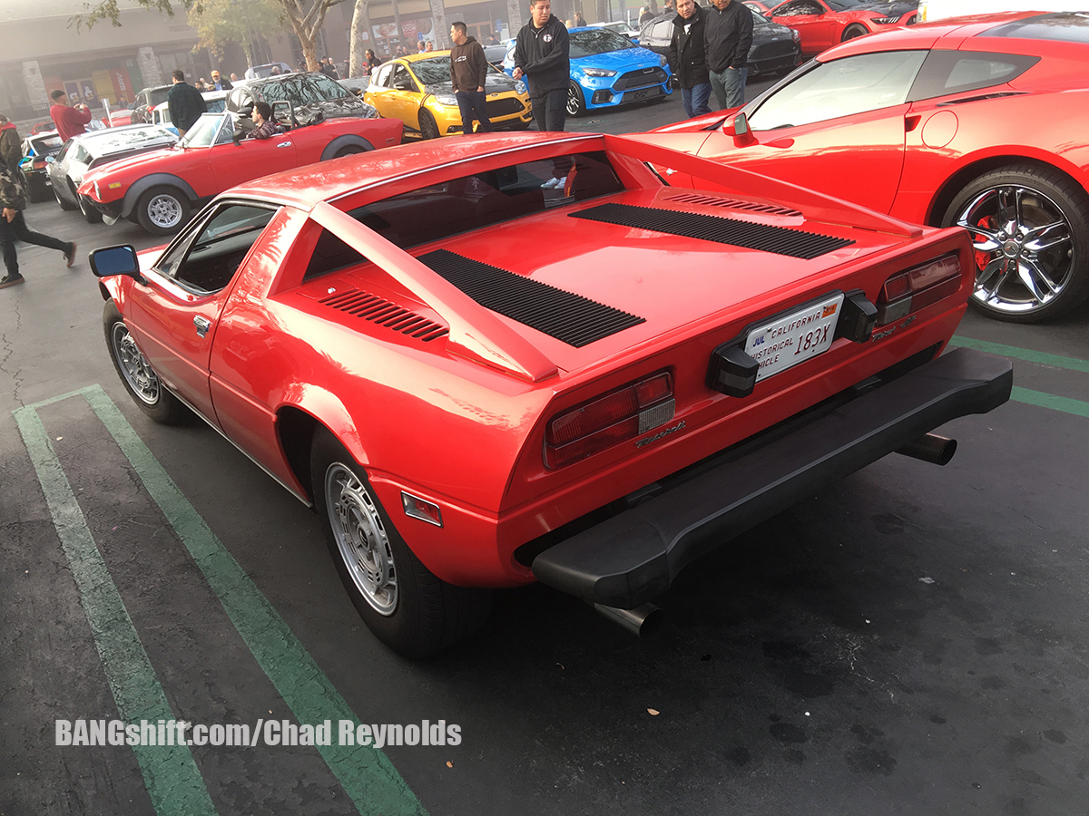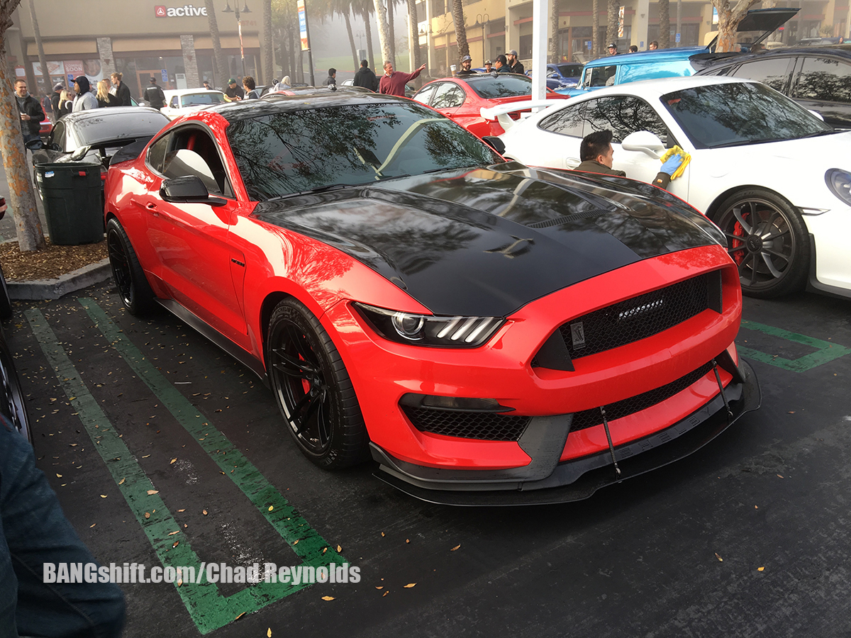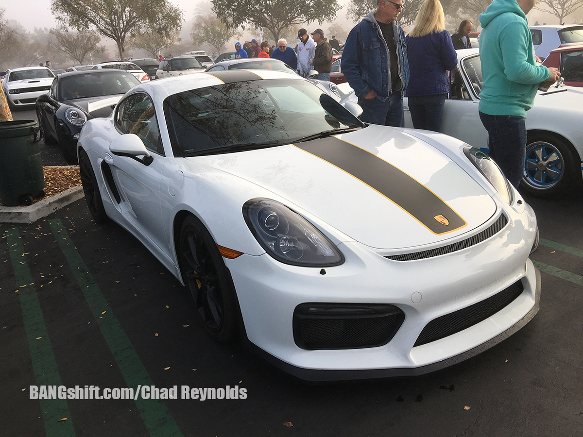 So after getting the address for the meet, and being told that the route would be handed out on site at around 8 am with an 8:30 am departure, we decided we would need to leave the house around 6:30 am. We hit the road, drove to the hour or so to Aliso Viejo, and had a gourmet breakfast of Del Taco before heading over to check out all the cars on hand. It was incredibly foggy on our way to the meet, and a little chilly. It was typical SoCal hoodie weather and was very damp and overcast. There were hundreds of cars in the parking lot, and they ranged from new to old, domestic to import, and everything in between. There were Lambos, McLarens, Corvettes, Mustangs, Camaros, Imports of all kinds new and old, and some familiar Pro Touring machines from the area including Matt Alcala in his cool Mustang, Steven Rupp in his Chevelle Wagon, and several others. While I shot photos of all the parked cars, Cole and I figured out a game plan for him to shoot all the on-road action while I drove his truck. We left near the front of the pack, drove slow, used the center dividers and shoulders to our advantage, and Cole got his hang out the window on to grab some cool shots.