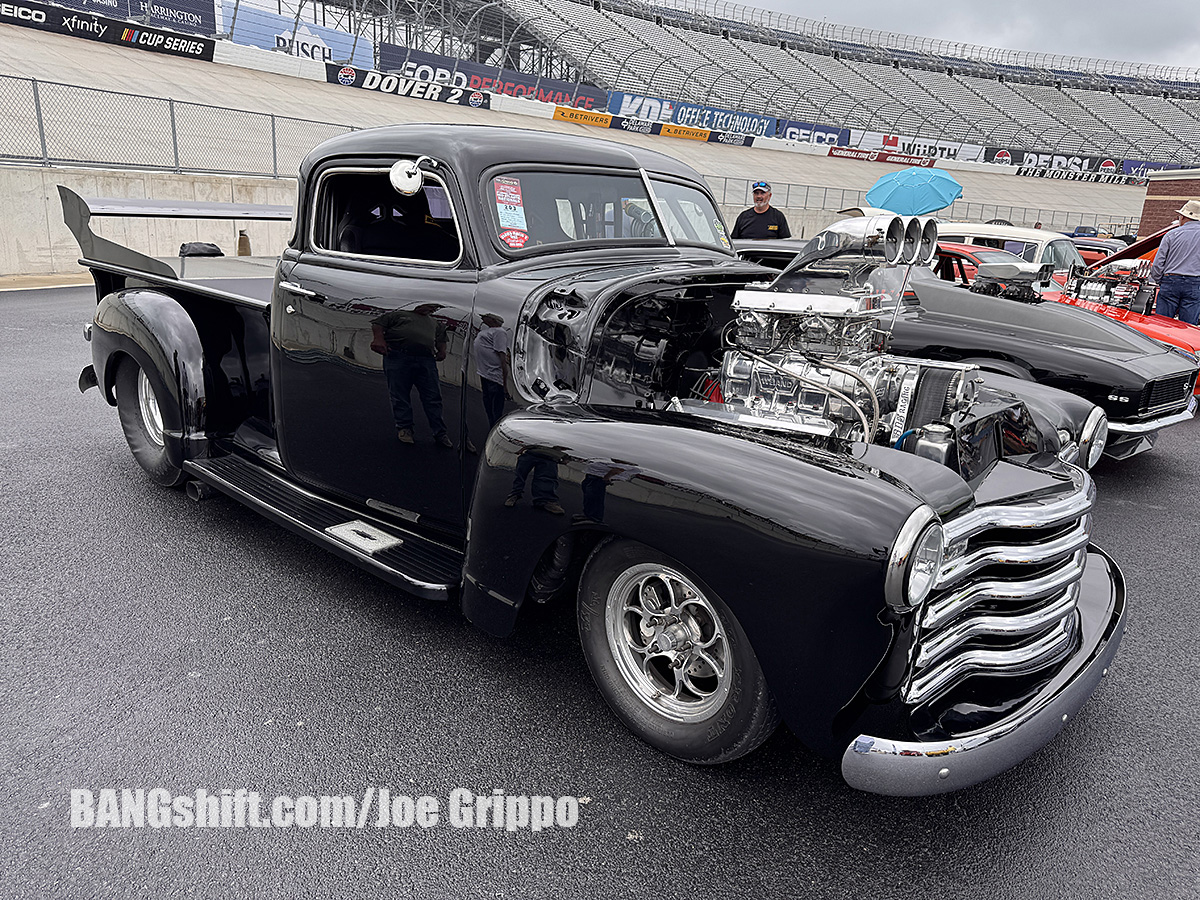 (Words and Photos by Joe Grippo) A few weeks back our race weekend was canceled due to rain which left me with a rare free day. So, I jumped in my truck and headed south to Delaware to take in the Goodguys Mid-Atlantic Nationals at Dover Motor Speedway, the famed Monster Mile. The Goodguys Rod and Custom Association has been making east coast inroads for many years, and Dover Speedway is the latest venue to host the party. And it’s a great spot. The expansive infield and paved pit area were loaded with show participants and vendors. Even pit road was lined up with awesome hot rods, muscle and custom cars. The paved roads throughout the facility made for some great cruising action. One of the outer parking lots was set up for the legendary Goodguys Autocross course, and it was hopping all weekend.