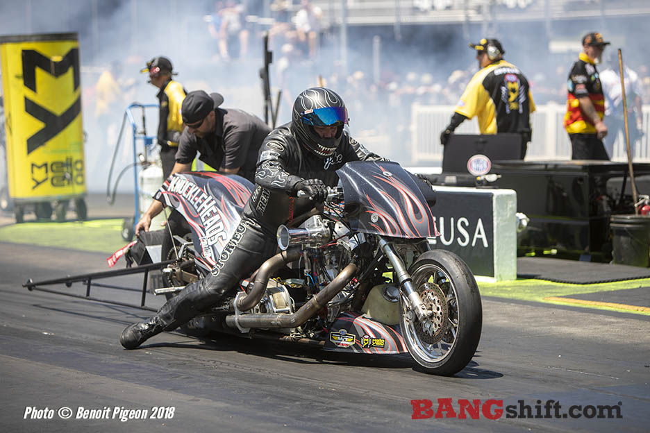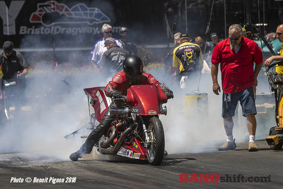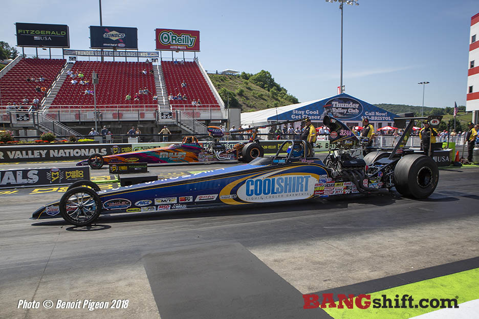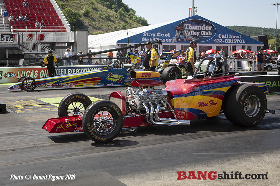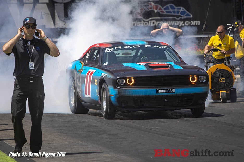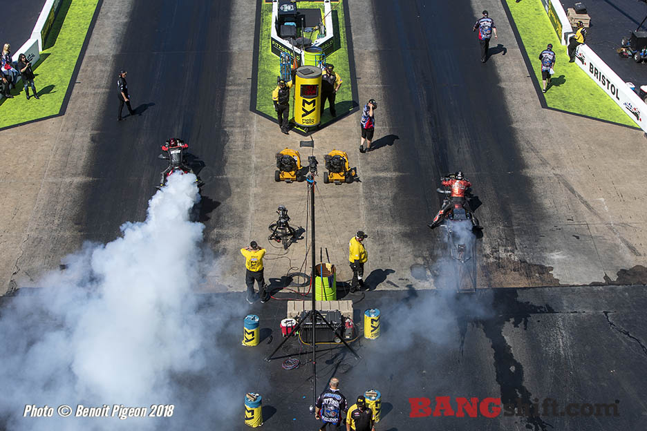 (Photos by Benoit Pigeon) – Just when you thought it was safe to go outside we are back with more awesome Benoit Pigeon photos from the 2018 NHRA Fitzgerald USA Thunder Valley Nationals. Apologies for the delay on these sweet images but better late than never, right? Unlike New England Dragway which is 90ft above sea level, the air in Bristol was about 4,500 during the high heat and humidity condition we experienced. The place is already an elevation track, basically so it is not historically the quickest place in the world but when you added all the other factors, things really got hard for crew chiefs and crews alike. In this gallery you will see a great collection of photos that span classes like Mickey Thompson top fuel Harley, stock eliminator, the SAM Tech factory stock showdown. Bristol was a pretty crazy race. The setting of the track is incredible, the track itself however has gotten a little rough over the years and after being in Virginia at one of the flattest and smoothest strips in the world the weekend before, it was giving everyone fits.