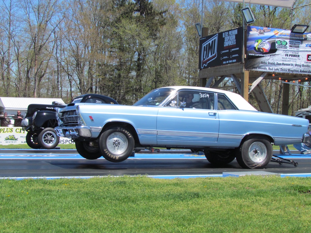 This gathering of Ford iron (Fe on the periodic table, coincidence?) is off the charts. Cobra Jet Mustangs, bad ass Fairlane’s, Galaxies from the 60’s and loads more battled on the strip in four classes, Cool FE (12 flat and slower), Hot FE (11.99 and quicker), the quickest 8 of the Hot FE’s squared off in Pro FE, there also was a Cobra Jet Class for original factory equipped CJ cars. Other fun stuff included a gamblers race and a Friday night bicycle shoot-out. Beaver Springs Dragway recently changed hands and new track owner Mike McCracken supported the FE Race and Reunion with some new track improvements while still maintaining the nostalgic feel of the facility. The manicured grass in the pits made a wonderful spot for the FE only car show. Check out the photos of the sweet Starliners, Shelby Mustangs, cool trucks and more. The little Model A roadster was a former 427 SOHC powered Comp Eliminator car back in the 60’s and was unearthed only a few weeks before the show, the new owner was reunited with the current owner of THE actual Cammer that was originally in the car who happened to be at the event! Only at the FE Reunion.