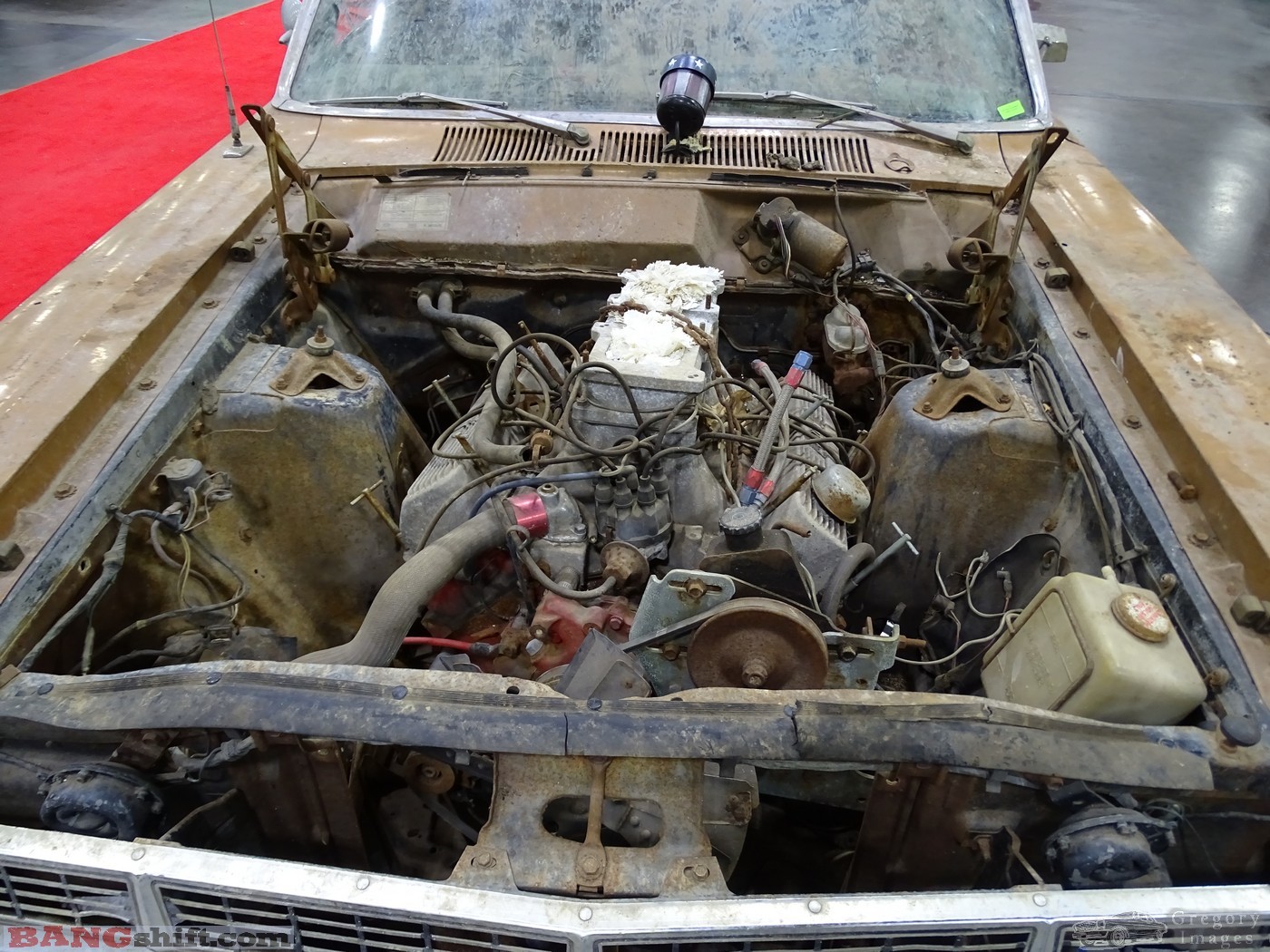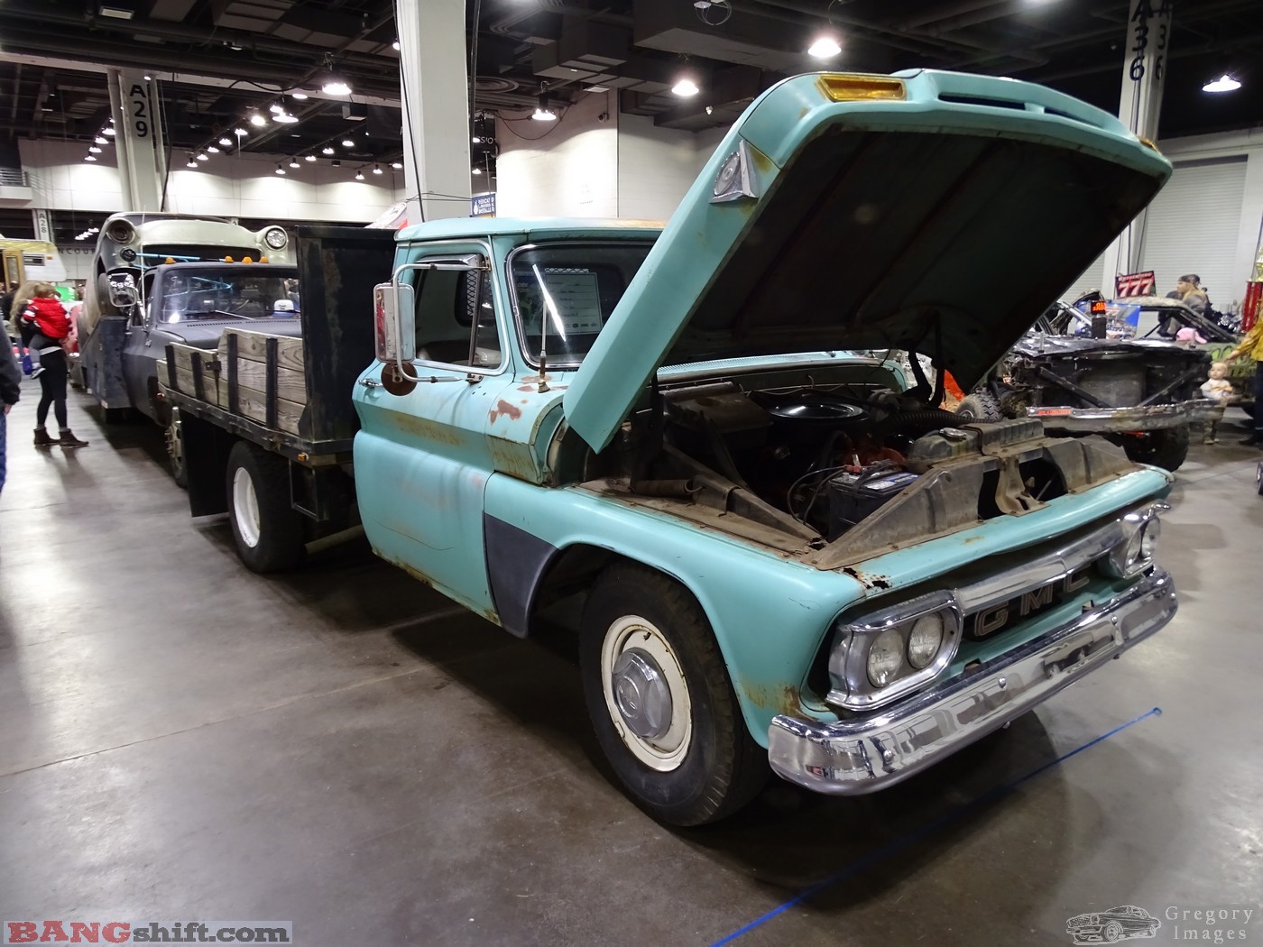 (Words and photos by Doug Gregory) – This stuff was mostly found in the section just to the right when you enter called ‘Survivor Alley’. It’s a mixture of race cars, barn finds, survivors, and fresh builds with an old, traditional look. This area and other similar rides that didn’t get in this section are my favorites of the show. A few TROG cars were sporting their minimalist trimmings and lack of anything even remotely resembling modern hardware or safety equipment.  That restored, square-body wrecker showed scars from being used in service. When I break down I want that (it is ‘when’ and not ‘if’). John Howard, a well-known Ford Falcon enthusiast, snagged this Daryl Starbird custom for his collection and gave it some loving then drive it to/from the show. He reports zero trouble on the ride, but some law enforcement gave him a good look. That’s Mike Finnegan standing next to the Falcon. More than likely Finnegan peered out the corner of his eye and thought ‘Wow, is that Dave Huber walking by?’. It could happen.