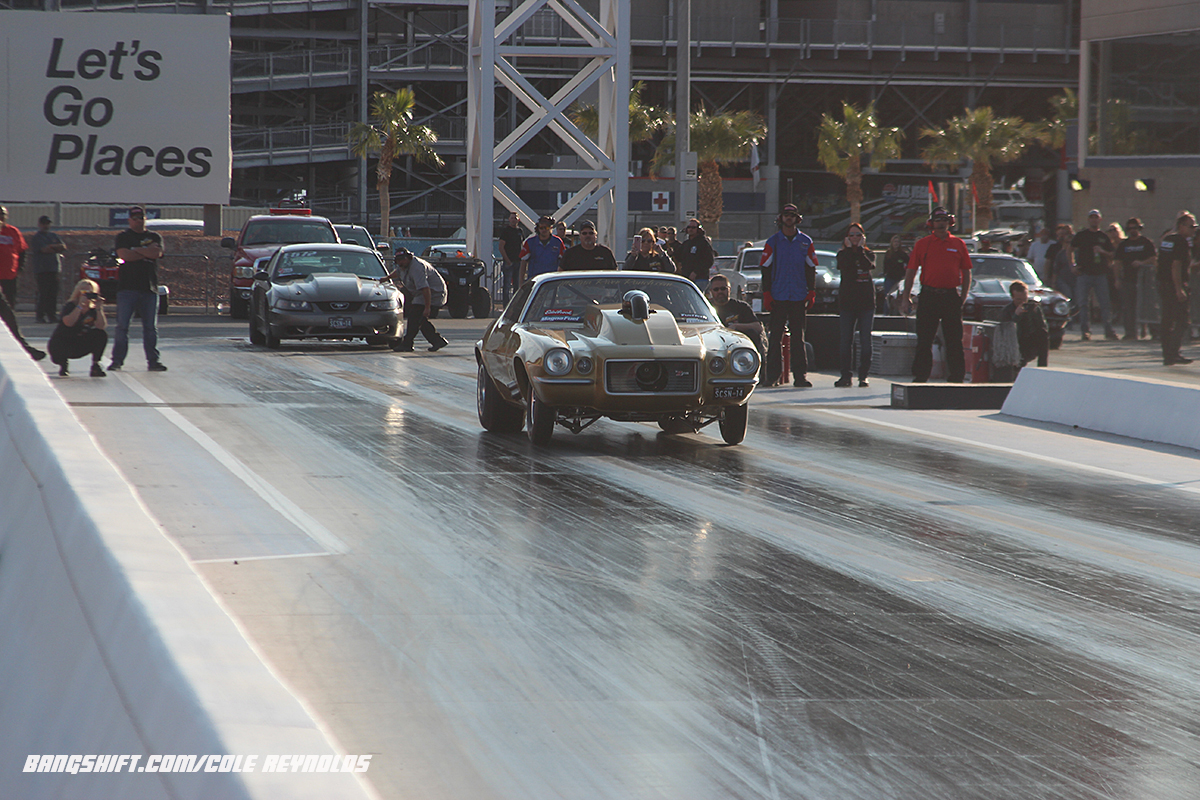 The race may be over, but that doesn’t mean we’ve shown you all we have to give from what may be the best Street Car Super Nationals ever. The sound of screaming engines at The Strip at Las Vegas Motor Speedway has subsided…Street Car Super Nationals 14 is over and done, and Chad and Cole are back at home getting some much-needed rest after busting their humps all weekend bringing you as much content as they could churn out. SCSN is an ass-kicker of an event to work because the PSCA knows how to get the cars in and the drivers willing to come around, lap after lap, for another chance at some of that sweet, sweet prize money. It’s Vegas, baby…surely, towards the end of the year, it’s worth risking a bit to see if you can take home a nice wad of bills, isn’t it? Several drivers gave it their best shot, including Dave Murray, whose Fox Mustang went on one of the wildest rides we’ve seen in recent memory. His car went sky-high and at one point was all-four off and flying down the strip on it’s side before making contact. Murray came out of the wreck unscathed, mercifully. That’s how committed these drivers were to putting their best effort out for all to see. Get a bye run to the next round? Nah, eff that…take the tree, boost on your own time and try to knock out a new record in the cold air! That’s the kind of racing that SCSN 14 brought out and if you caught the live video we brought you, you got to see all of that go down!