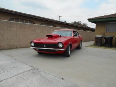 Killer PRO STREET 1970 FORD MAVERICK, ORIGINAL GRABBER BUT NO GRABBER HOOD (HOOD IS FIBERGLASS), WHEEL WELLS ARE TUBBED, 8-POINT ROLL CAGE, FORMER DRAG CAR CONVERTED BACK TO STREET, BIG BLOCK 410 CID MOTOR (390 ENGINE BLOCK W/428 CRANKSHAFT) BIG RACING CAM, 10:1 PISTONS, 4-SPEED MANUAL TOPLOADER TRANSMISSION WITH RECENT REBUILD, FORD 9-INCH REAREND, NARROWED AXLES, HIGH GEARING AT 4:86 RATIO. MICKEY THOMPSON TIRES, 31X16.50X15 REAR, 15X14 WELD WHEELS ON THE REAR, 15X5 WELD WHEELS AND RADIALS ON FRONT, OVERSIZE RADIATOR, DUAL ELECTRIC FANS, VERY RARE FACTORY FORD RACING INTAKE, DUAL 650 CFM HOLLY CARBS, ELECTRONIC IGNITION, RACE TYPE STEERING WHEEL, FIBERGLASS RACING SEATS, RACE GUAGES (FUEL PRESSURE, AMPS, OIL PRESSUR, RPM/TACH), BEAUTIFUL RED MILAN URETHANE PAINT, GOOD DRUM BRAKES, LIGHTS WORK BUT NEEDS TURN SIGNALS, OVERALL AWESOME AND UNIQUE CAR FOR THE MAVERICK AND/OR OLD FORD ENTHUSIAST! MUST SELL DUE TO RECENT SURGERY AND CONSEQUENT HANDICAP.