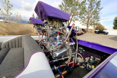 Did you notice the draw through Holley carbs in front of the turbos? Dos turbos. That’s Spanish for twin turbos in case you were wondering. And the 482 cubich inch tall deck Big Block Chevrolet underneath them has all the right parts to make stupid horsepower when pressurized by the twins, so I’m sure this thing will put a smile on your face and help you shit yourself all in the same moment. Sign us up!