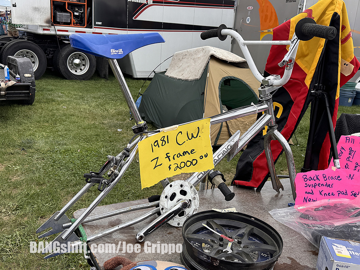 The old mantra “I found it at Carlisle!”, held true once again this year and you will see what I mean when you dig into the gallery and check some of the cool shit offered up for sale. Looking for some cool vintage wheels? How about a set of Cragar Screamers or a pair of badass M/T Bear Claws! Potential projects were everywhere ranging from full on barn finds to rusty hulks dragged out of who knows where. Looking for a running, driving ride? Then the car corral was for you. If you are well heeled, Corvette power broker Rod Saboury had an absolutley killer custom painted ex-Super Stocker C2 for sale. If you had a death wish, maybe the SBC powered, flip-frontend MG was for you. Sketchiness personified. Maybe vintage toys and collectibles are more your speed? Spring Carlisle has you covered, we spied a barrel full of old school orange Hot Wheels track and a cool Planet of the Apes model. A heart stopping find for this BangShifter was the 1981 CW Racing Z-Frame BMX bike project, hadn’t seen one of those in years.