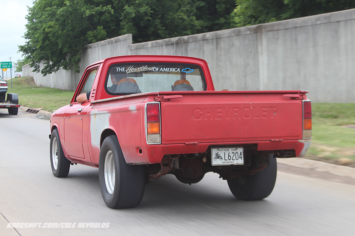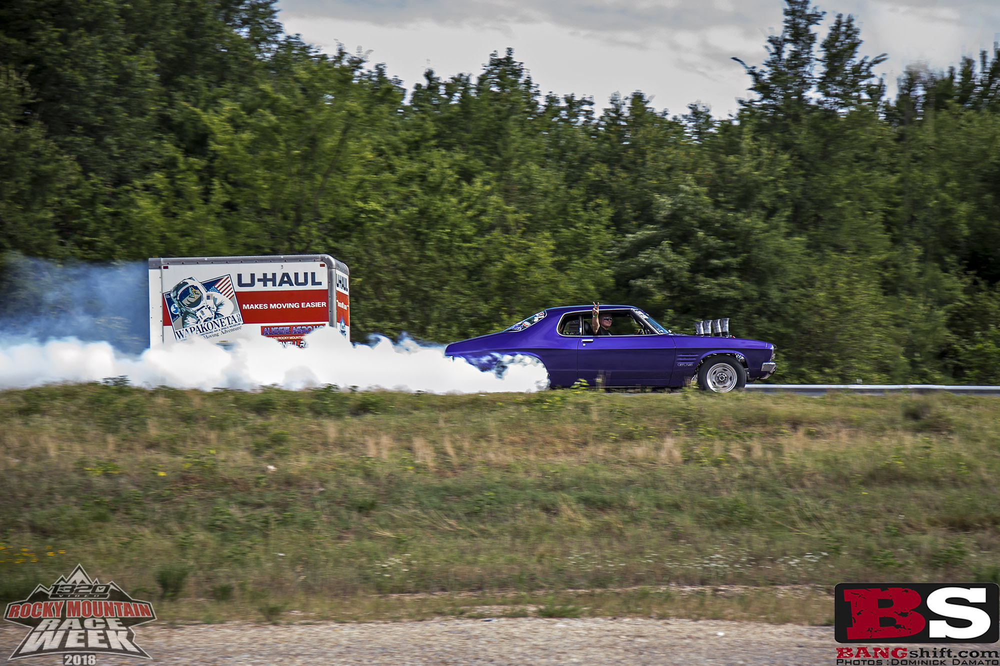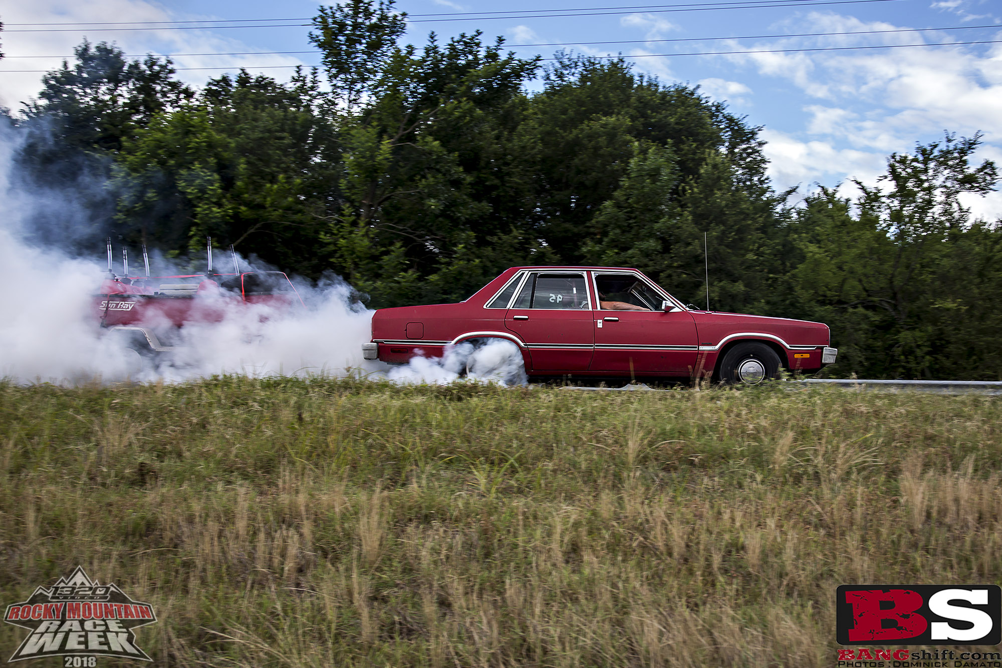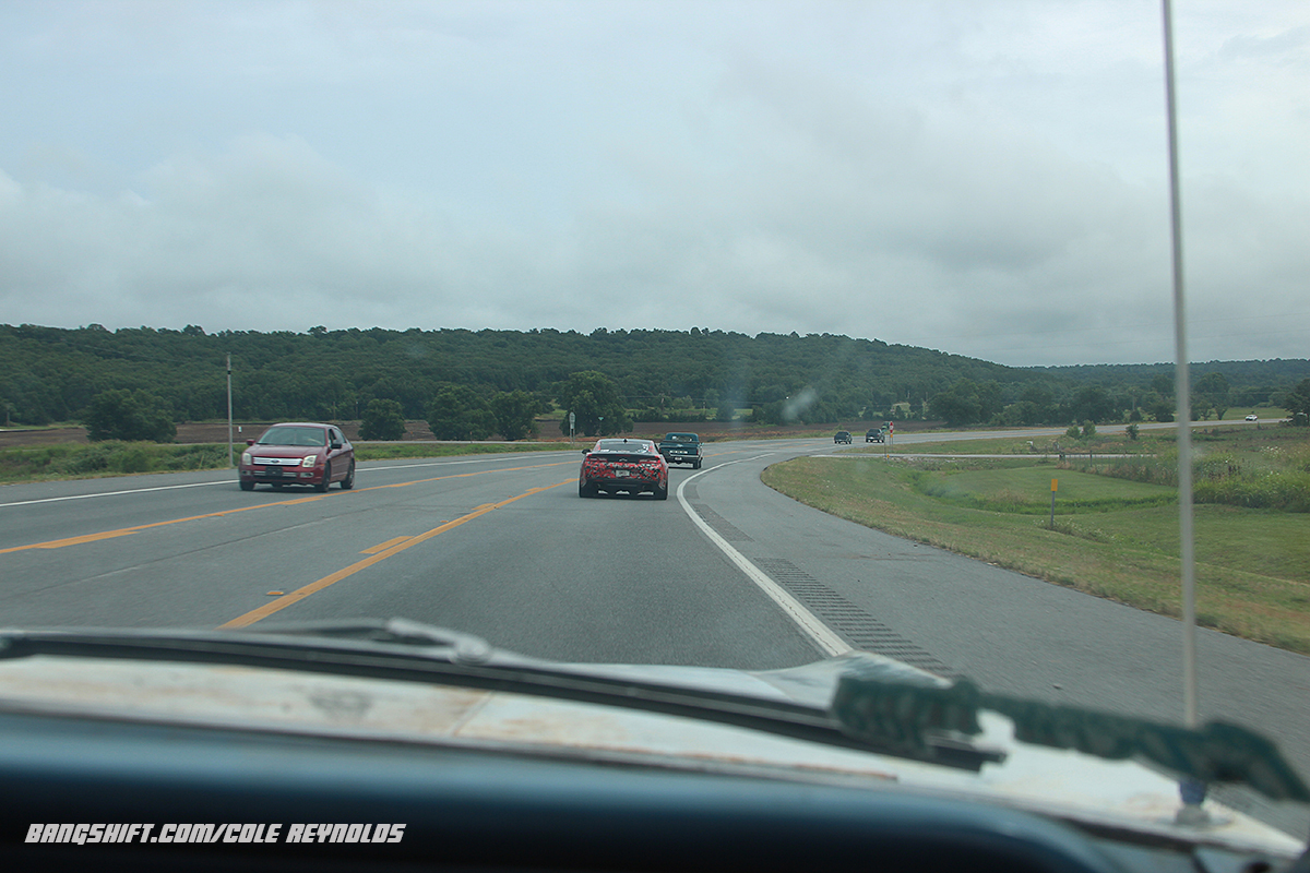 (Photos by Cole Reynolds and Dominick Domato/DRD Photos) Rocky Mountain Race Week Hump Day was spent driving from Ozark Raceway Park to Thunder Valley in Noble Oklahoma and we had an awesome time checking out hot rods, looking at cows, and dodging rain drops. Okay we didn’t dodge them, but some did. Thankfully the behemoth that is Ethyl doesn’t have much trouble in moderate rain, even with the M&H Drag Radials, but anything more and it gets scary. For some others on different tires or with lighter weight, the rain can be scary. With that in mind some folks chose to park wherever they could find shelter to wait out the rain in comfort. We’ve got road trip photos, including some trailer burnouts thanks to Dom Domato and a certain Fairmont. (Closed course, Professional Driver…)