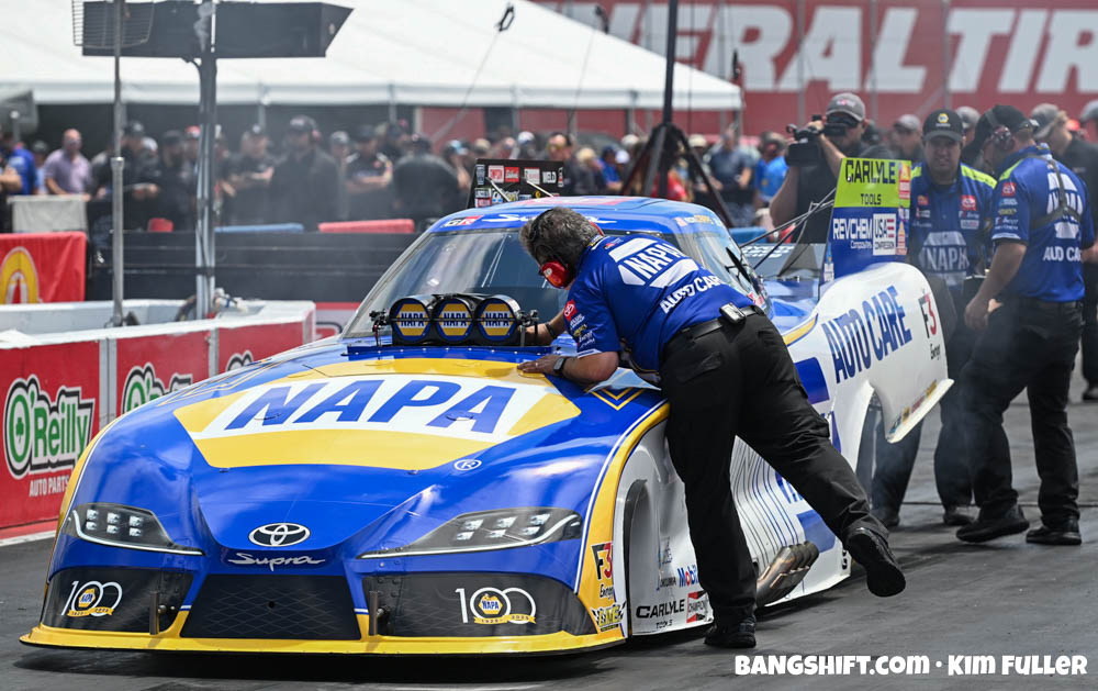 In Funny Car, Matt Hagan rocketed to the provisional No. 1 spot on Friday with a 3.861 at 332.59 mph, holding onto the position through Saturday. He’ll meet veteran Jeff Diehl in round one. Despite qualifying No. 1, Hagan was edged out in the final of the Mission #2Fast2Tasty Challenge on Saturday by defending event winner Ron Capps, who laid down a strong 3.904 at 324.20 mph in his NAPA Auto Parts Toyota GR Supra.