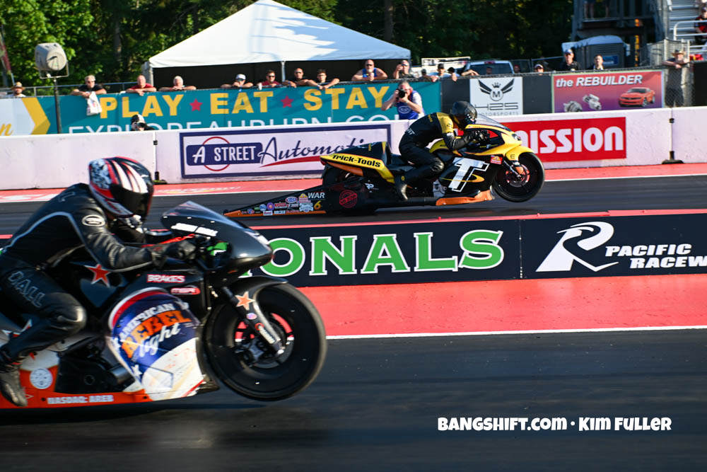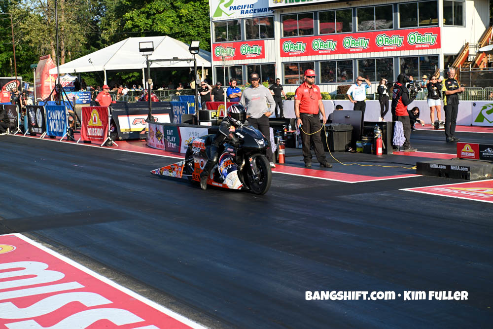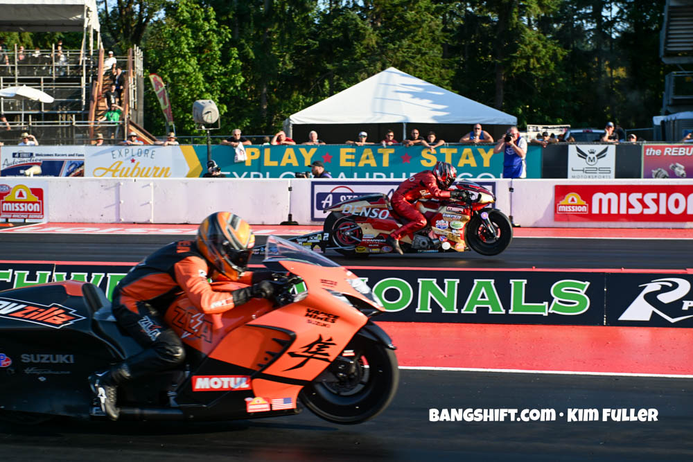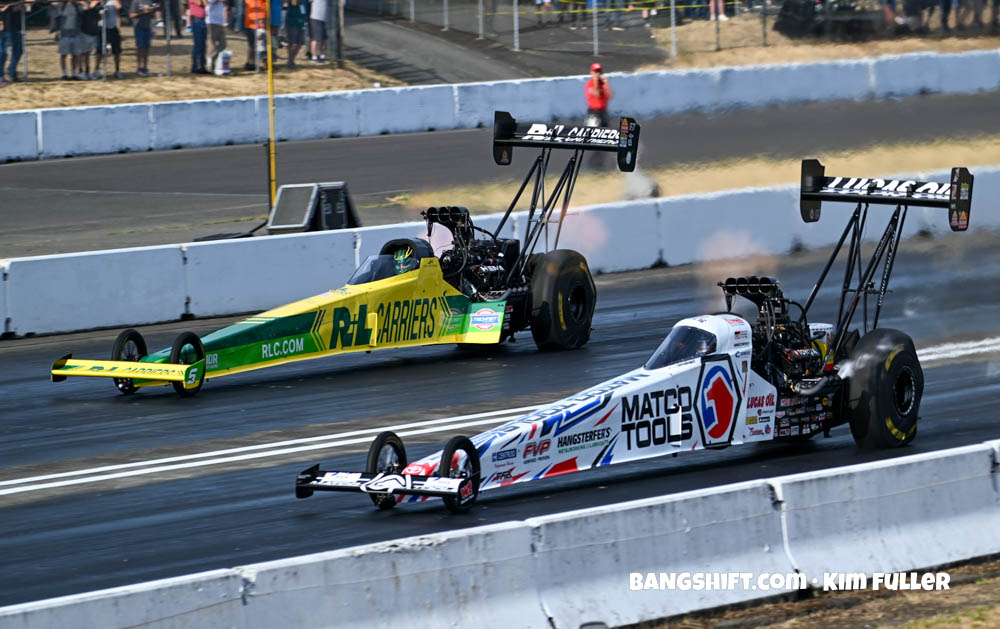 (Photos by Kim Fuller) • Kalitta, Prock, Glenn and Hall qualify No. 1 at Pacific Raceways for the NHRA Northwest Nationals.