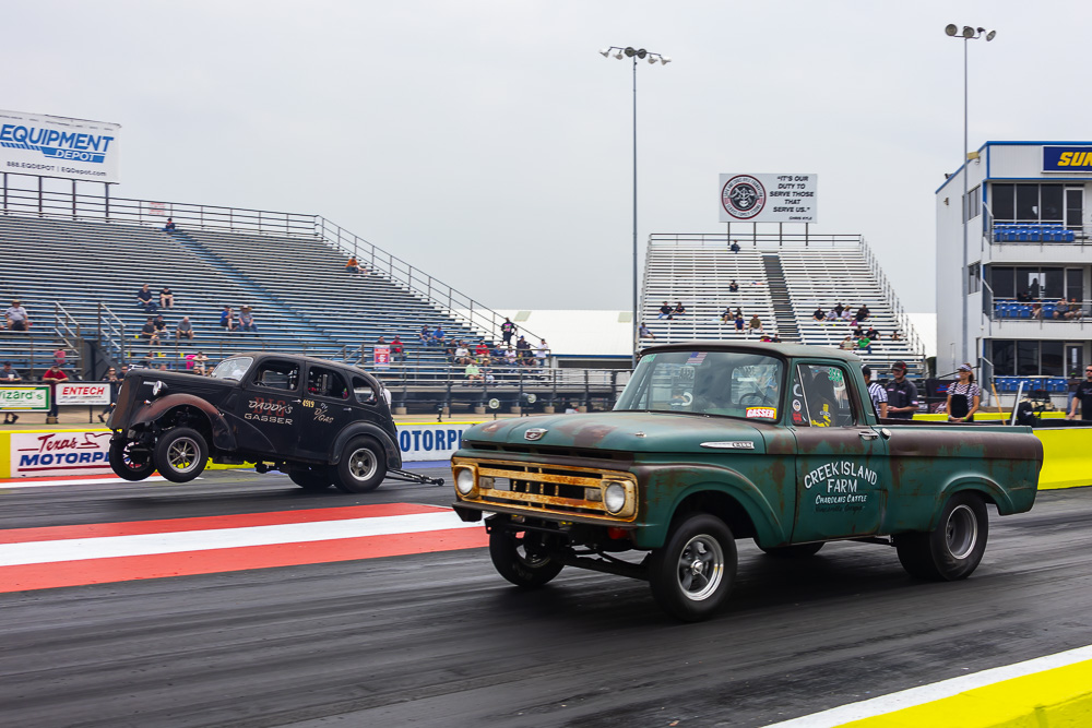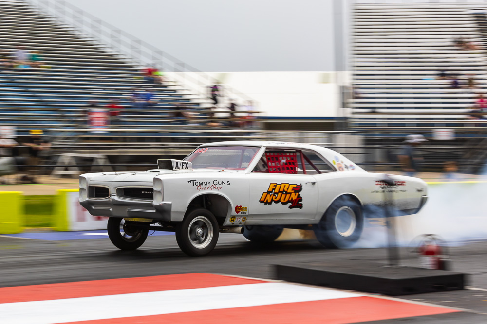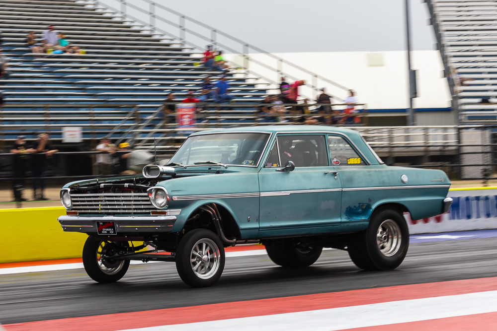 (Photos by Wes Allison) – A man cannot live on funny cars alone, right? Well if that man has 70 of them at his event he can, but if that man is Chris Graves, 70 funny cars ain’t enough. The funny car chaos founder and organizer added a gasser and A/FX style class to the fun and as you will see, these guys and girls were not messing around. Some truly magnificent cars on display here boiling tires, leaving with the wheels up, and delighting people on the grounds and those watching online.