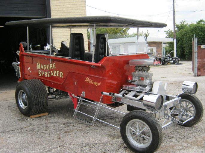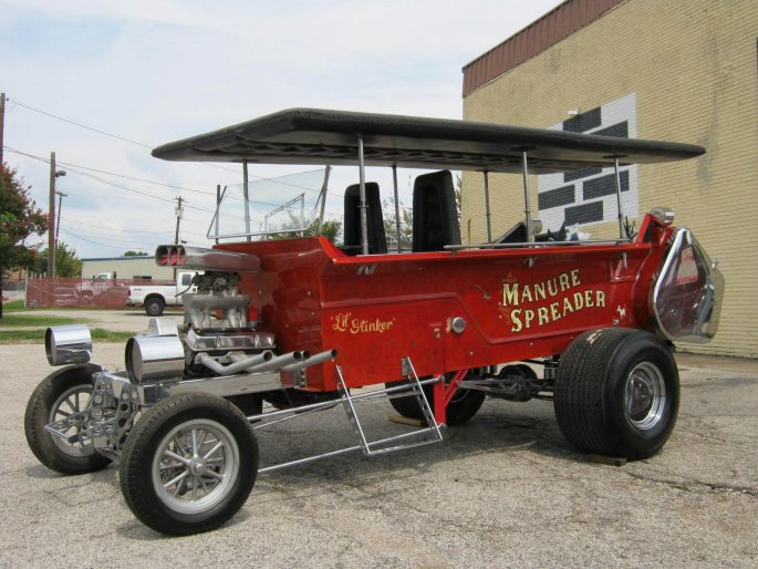 If you have ever dreamed of owing a weird, 1970s show rod now’s your chance! Yes, the George Barris Lil’ Stinker Manure Spreader could be yours! The asking price for the non-running and driving machine is $15,500 and while it seems to be in fine condition, it is basically yard art. It isn’t that the engine is broken or the transmission or something, it was never actually designed to be driven, apparently. Yes, you could certainly invest into the prospect of designing a driveline for the rig but then there’s the awesome chance that you’ll die in the process of motoring down the road.