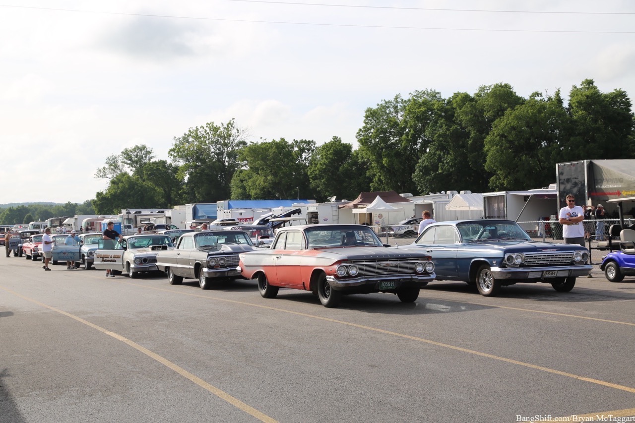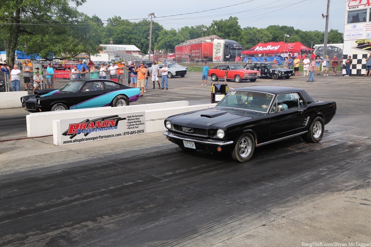 If the car show participants weren’t happy about the rain that fell on Thursday morning at the Holley Hot Rod Reunion 2017, you can imagine the gnashing of teeth that was occurring in the pits with the drag racers. Standing water down both lanes by noon was nobody’s idea of a good time. Many teams elected to use the rain to go through their cars for a thorough checkover before Friday’s sunnier forecast broke. Since the weather was much cooler than Friday was expected to be, those that did run ran the quarter more as shakedown passes or to test their setups. By the later parts of the day, though, the sun broke out and first-round qualification races were being thrown down. Traction? Not a problem…unless you owned the rough 1968 Camaro that spit it’s rear universal joint in every possible direction, or your car was one of the several that spit up water or coolant at the starting line. What would Friday bring? Here’s a selection of what Thursday offered up as a teaser. Click on a photo below to check out the early runners at Beech Bend: