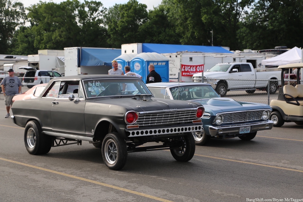 If the car show participants weren’t happy about the rain that fell on Thursday morning at the Holley Hot Rod Reunion 2017, you can imagine the gnashing of teeth that was occurring in the pits with the drag racers. Standing water down both lanes by noon was nobody’s idea of a good time. Many teams elected to use the rain to go through their cars for a thorough checkover before Friday’s sunnier forecast broke. Since the weather was much cooler than Friday was expected to be, those that did run ran the quarter more as shakedown passes or to test their setups. By the later parts of the day, though, the sun broke out and first-round qualification races were being thrown down. Traction? Not a problem…unless you owned the rough 1968 Camaro that spit it’s rear universal joint in every possible direction, or your car was one of the several that spit up water or coolant at the starting line. What would Friday bring? Here’s a selection of what Thursday offered up as a teaser. Click on a photo below to check out the early runners at Beech Bend: