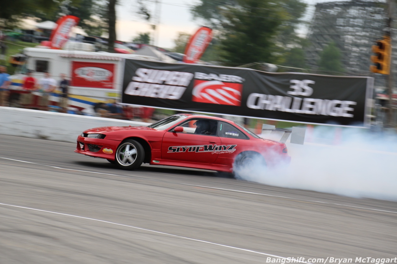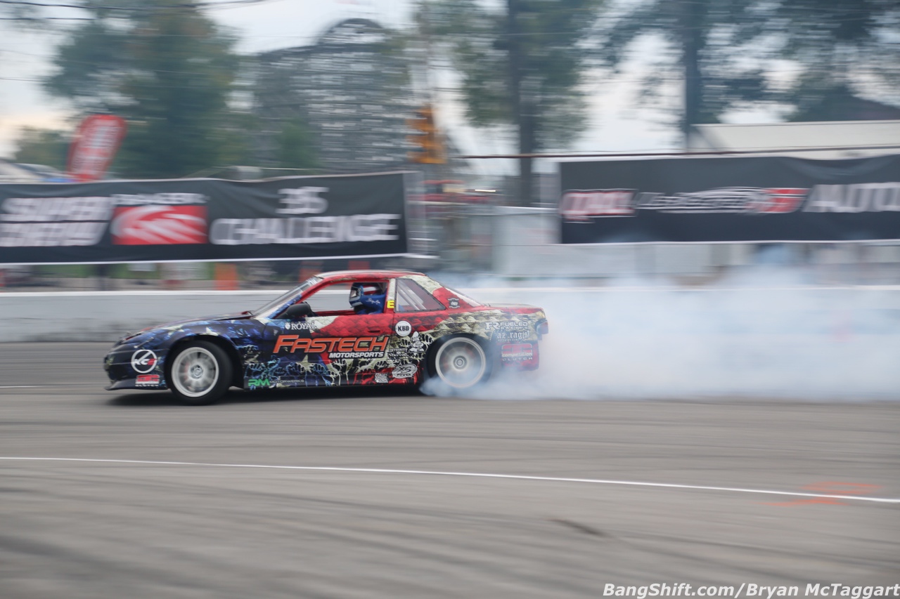 If you found the drifting to be a bit immature for your taste, then the Grand Champion group is probably more your flavor. The class is meant to showcase vehicles that can do everything well, so in addition to the 3S Challenge that would take place on Sunday and the autocross courses, each car had to make a lap down the quarter mile to earn a time. Keep in mind that most of these vehicles are designed to turn corners, not to send traction rearward, so this turns out to be more of an equalizer than you’d think it should be. And with one hour for lapping, it wasn’t a surprise to see cars making two or three hits on the strip to dial out the formula. Mike DuSold’s monster Camaro just about gave all three of us a heart attack in the tower on it’s first pass down the track, with the taillights hopping all over the place as the twin-turbo beast put up a hell of a fight. Even with Mr. Toad’s Wild Ride, DuSold was the fastest man in the group that spread out from a swapped Jeep Comanche pickup through established players like Brian Finch.