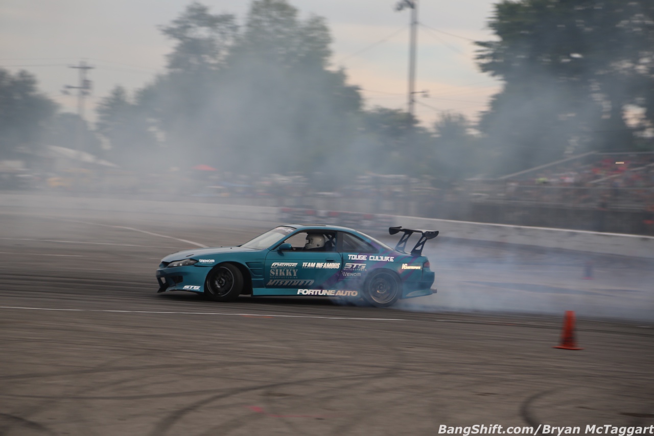 With the weather proving to not be an issue for Friday nights, the crowds started to pour in later in the afternoon to see the shows that were taking place, and for the last bit of Friday night, it boiled down to two spectacular scenes: the drift pit in the oval track of Beech Bend Raceway and the Grand Champion drag racing scene that went down after dark. Drifting speaks for itself: Take one rear-drive vehicle that is now sporting eight cylinders of the General’s latest and greatest, and throw it around a laid-out course with both the reckless abandon of a teenager who got the keys to a real-deal hot rod, and the precision of a surgeon. You may not like drifting as a sport and that’s fine, but there is always a reason to enjoy watching someone hanging the tail out for distance without taking out a crowd of onlookers in the process. With that joke made, yes, there was an S-197 Mustang convertible making laps and no, nobody was struck.