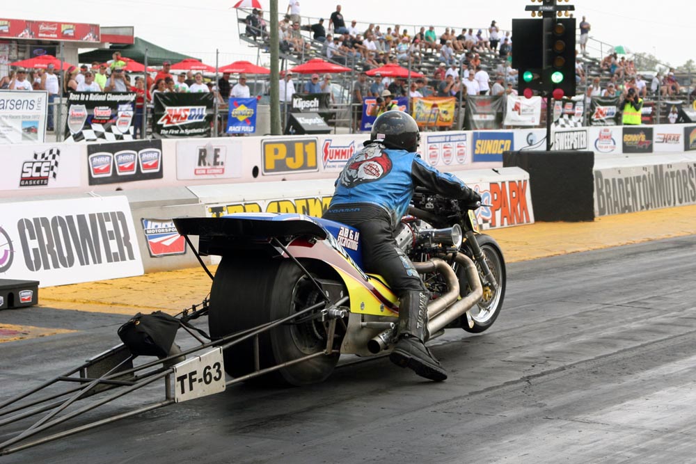 Jay Turner is a three-time IHRA World Champion and sits in the top spot in the Nitro Harley class. Tracy Kile is in second with a 67 point deficit. Turner leads the winners in Nitro Harley with four and Kile has two wins with two runner-up finishes.