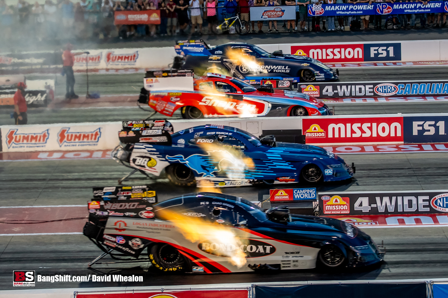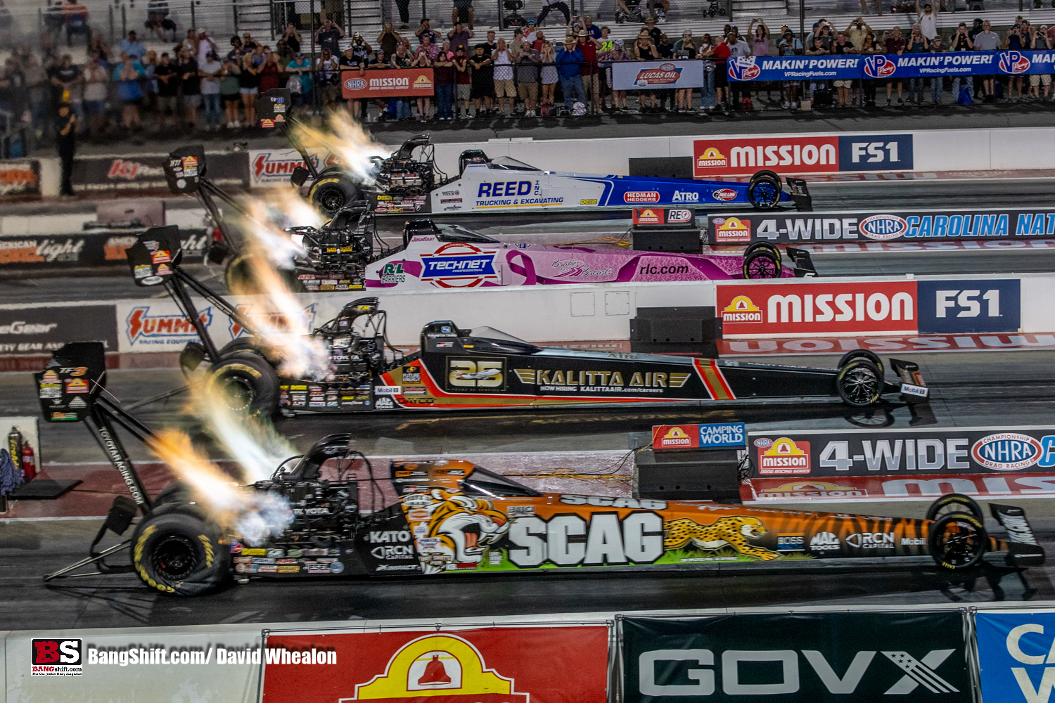 (Photos by David Whealon) – It was a cool, fast, and adventurous weekend for the stars of the NHRA Mission Drag Racing Series at the NHRA Four-Wide Nationals at zMax Dragway in Charlotte, North Carolina. Lucky for us, we have great photos from our dude David Whealon who was on hand shooting all kinds of race cars, from nitro burners to door cars and everything in between.