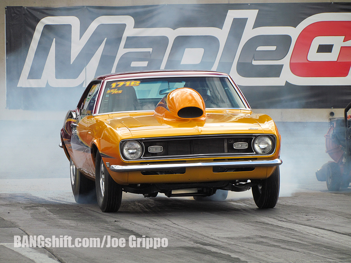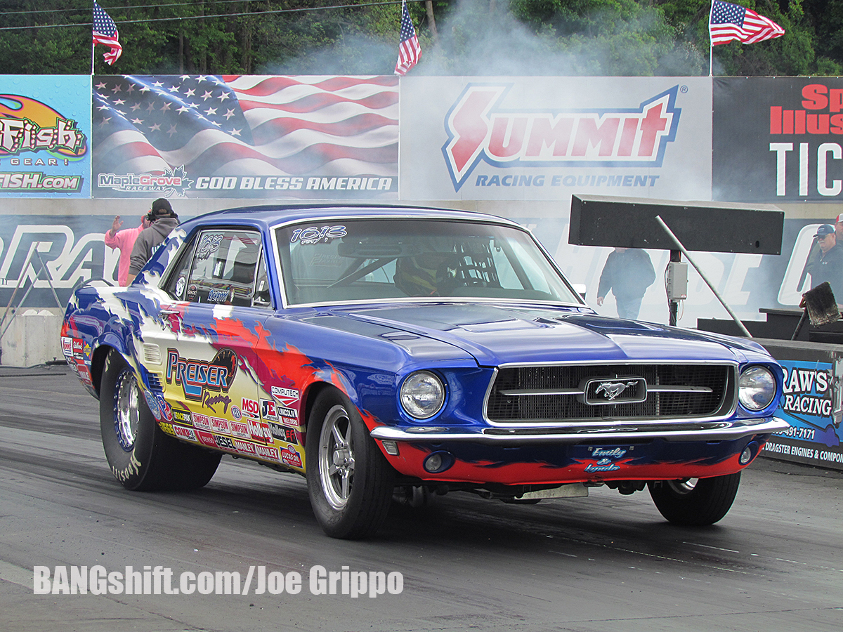 All classes from Alcohol down to the Index racers had strong turnouts which made for great competition. Stock and Super Stock Eliminator are my personal favorites, and you will find they dominate the gallery. But dig into everything else, you will find some of the cleanest, most engineered and throughout machines in racing. Even a jet-powered truck! Maple Grove owners, the Koretsky family stepped up and hosted a Saturday Night of Chaos, with carload pricing, food specials, Alcohol Funny Car and Dragster eliminations, 8.50 Index qualifying and other classes under the lights. The night ended with a solid fireworks show set to patriotic classic rock. Good stuff!