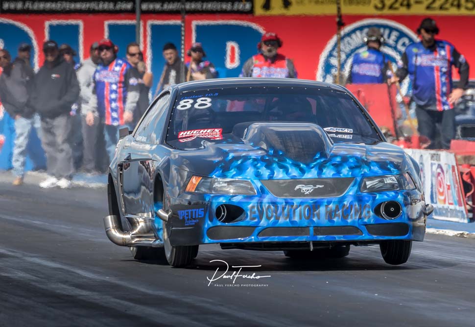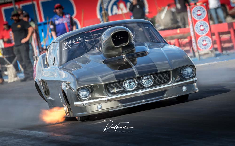 California Shootout winners at Famoso were Giuseppe Gentile won in Big Tire, Small Tire winner was Ryan “Toaster” Jones’ Nova, Outlaw 8.5 was Manny Figueroa’s Mustang, Ultra Street winner was Dan Dagata’s vintage Mustang, Roger Stalnaker’s old school Corvair took the win in King of the Index and in Super Pro and Pro Greg Dreher was a man on a mission, doubling up in both classes. Roger Holder (above) in his sleek new Pro Mod Camaro, from Xtreme Pro Mods West, took the class.