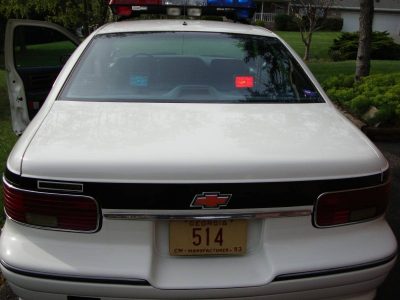 Restored with official GM Demo decals for promotional display at 2010 Police Car Trials. Driven less than 1000 since. Comes with GM sales promotion literature, official 1993 Police Car Trials performance stats and all documentation. Former Newport, TN, police in-service unit -retired. Wheels upgraded to 1994 OEM with new centers. Original L05 5.7 V8 with green hoses. New radiator. New OEM rubber floor covering. New dual stainless performance exhaust less converters. Has vinyl rear seats. Will include set of cloth matching rear seats and extra front passenger seat, extra dash cluster & GM-Bose radio. Door panels replaced from ’93 LTZ. Dash is perfect with no cracks. New A/C compressor but needs to be charged. Roof lights functional with console control panel and has roof quick disconnect for removal. ‘Out-of-Service’ roof bar canvas cover included. Tires less than 2500 miles w/new spare – not pursuit rated. No known mechanical problems. Some play in steering. Some undercarriage surface rust. Sold as is. Photos are 2 years old with car garaged or covered since except for local events. Odometer shows 117k but not know to be the original cluster. Spare cluster shows 135k. This big car is FAST and rides great. Cash or certified payment IN PERSON ONLY.
