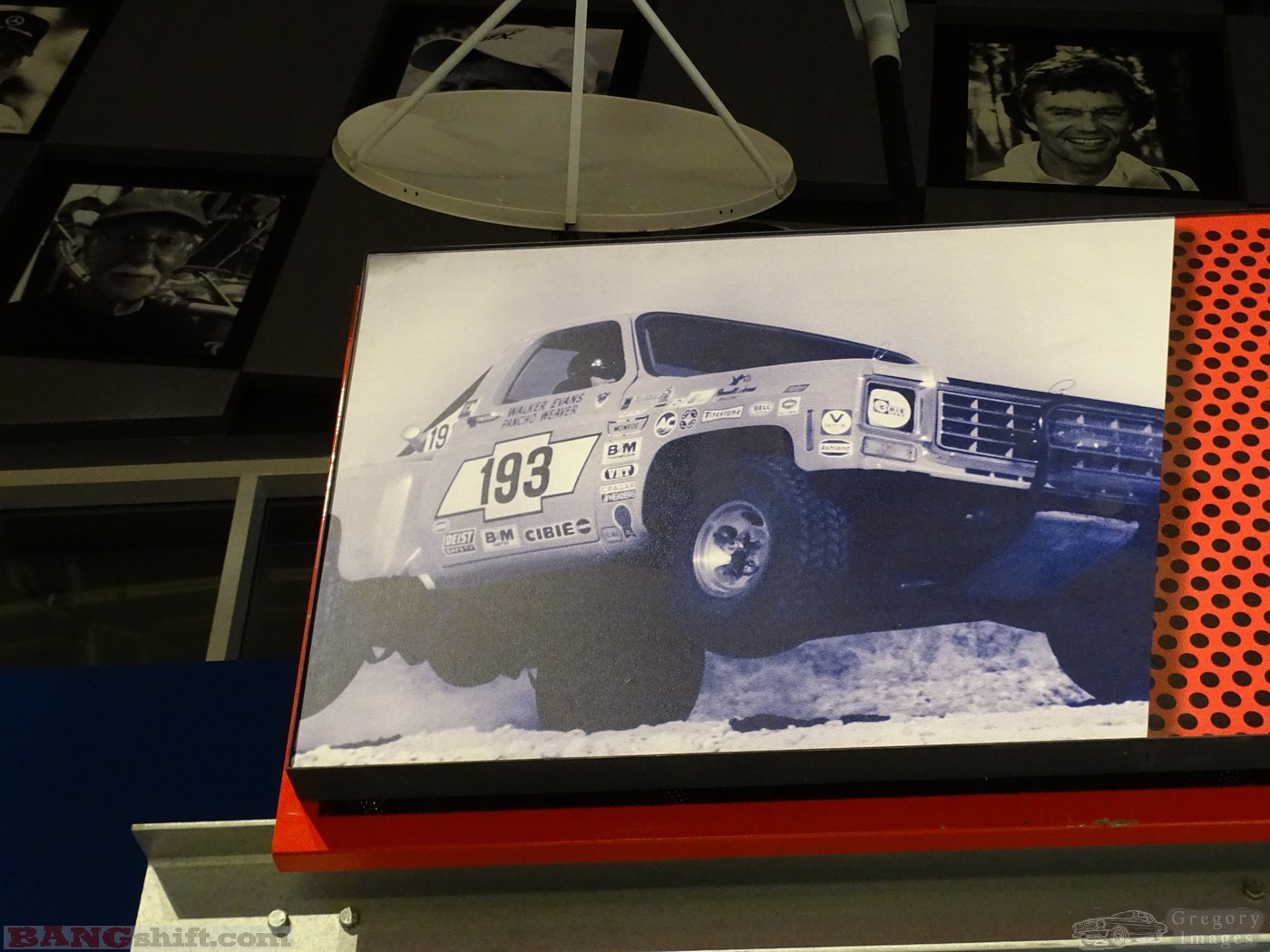 Once we completed our track tour we entered the Motorsports Hall of Fame of America. It’s new. Big main room with several alcoves and two theaters. Lots of memorabilia, dioramas, trophies, portraits and such. Sir Malcolm’s Bluebird pays homage to the land speed racing done not many miles away on the beaches stretching down through Ponce Inlet. There are some pretty interesting displays of hot rods, an airplane, and vintage racers. The cars displayed on the replica 31deg banking are pretty interesting too. It’s a unique way of viewing them and it seems like they are just an arm’s-length away. The more we looked the more we saw and that drew us in to read more of the plaques and displays. Definitely not a waste of one’s time and now we definitely owe our friend for getting us the access. Oh yeah, the Harley Earl trophy sits right close to this year’s Daytona 500 winner just as it was in the winner’s circle. Though we’re not big fans of modern-day NASCAR, this is actually pretty cool to see as well. In the gift shop we managed to score a few items left over from this year’s Rolex 24hr. Most of it was marked at clearance prices. Perhaps the three of us were not their stereotypical visitor. If you happen to be down that way….I highly suggest visiting.