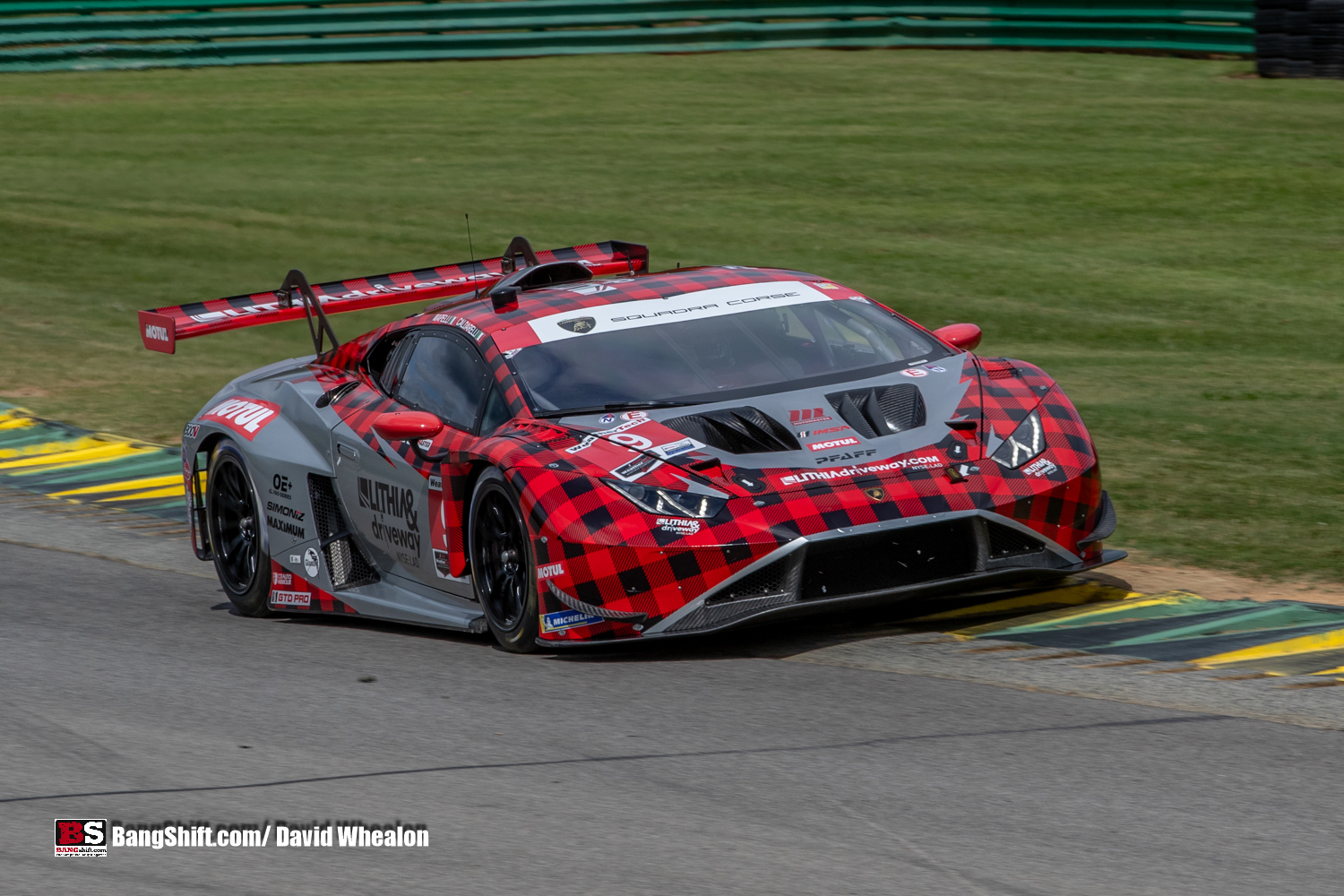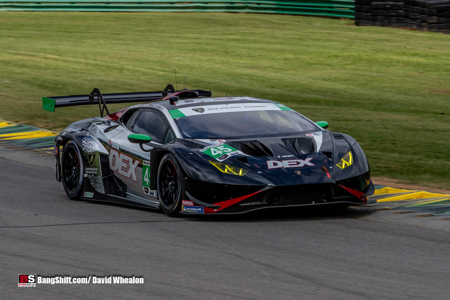 (Words and Photos by David Whealon) Well we’re back to the rolling hills of the southern Virginia countryside at one of the most beautiful and award winning road racing courses in the USA, Virginia International Raceway (VIR) in Alton, Va.  This event marks the tenth consecutive running of America’s world class sports car racing series returning for the IMSA Michelin GT Challenge. Unlike most other IMSA events, this one is limited to only GTD Pro and GTD racers sans the Prototypes. But that doesn’t mean there’s any lack of fast action or excitement on the state park like 3.27 mile road circuit.  With the long straights, winding turns and elevation changes, VIR is one of the fastest and most technical tracks that these factory based and non-factory teams will compete on all season. With the likes of Lamborghini, Lexus, Acura, AMG Mercedes, Aston Martin, BMW and the ever popular American muscle Chevy Corvette along with the new Ford Mustang GT3, bragging rights to this one are truly cherished.