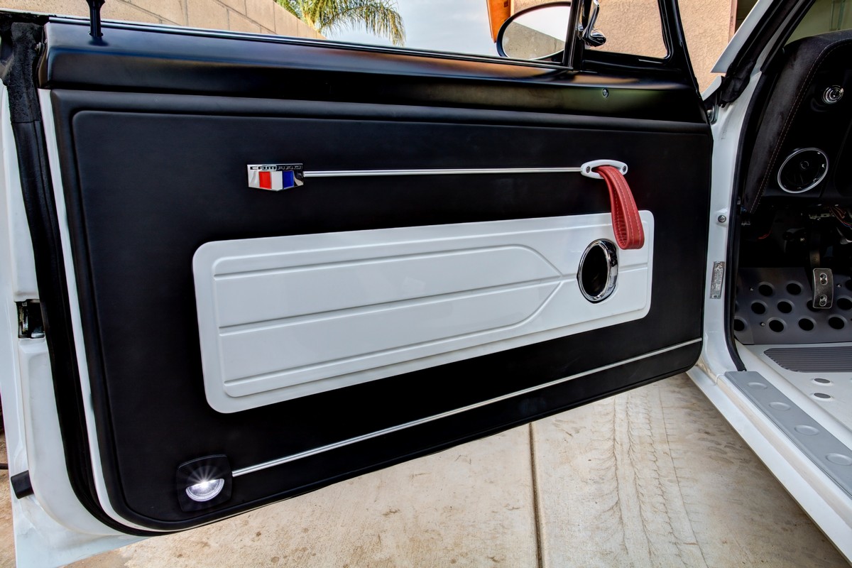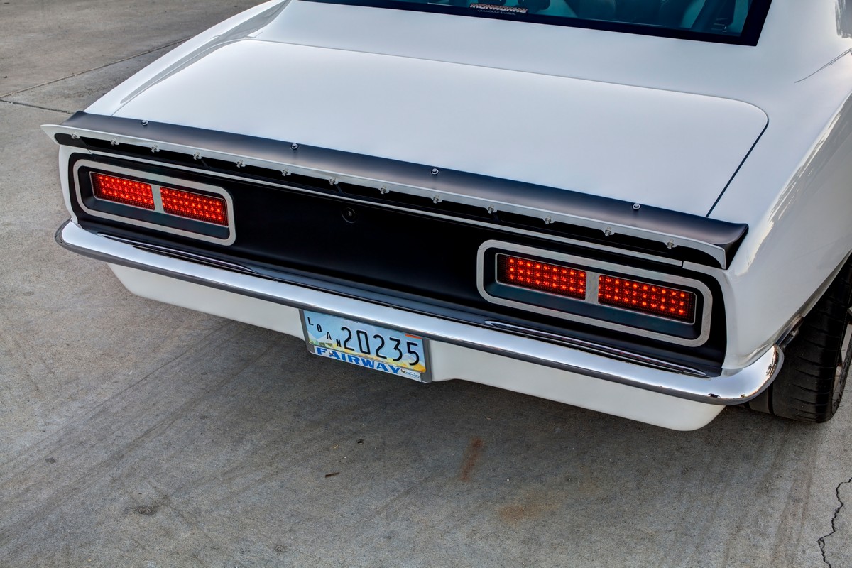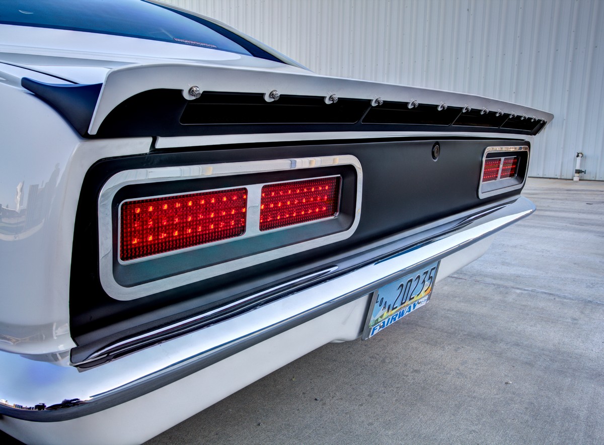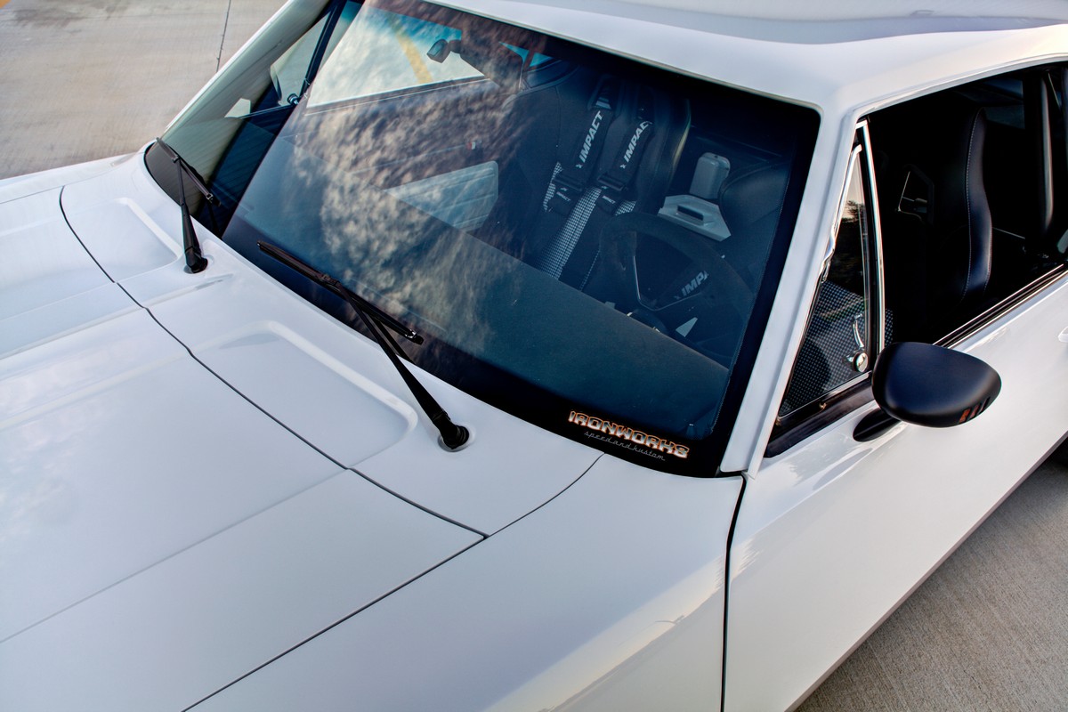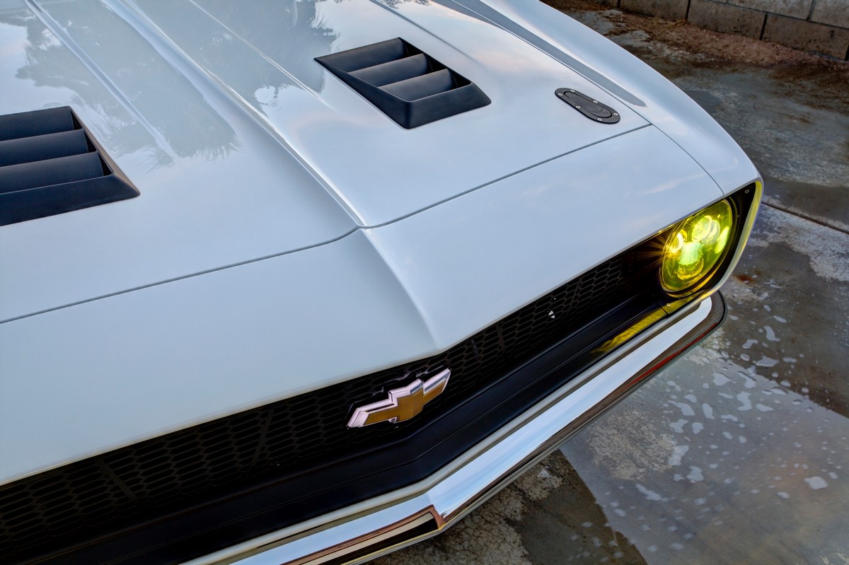 The Camaro’s front grille was custom-made, and the lower front valance was extended, not only for a distinctive appearance but also to accommodate a larger diameter fog light. The body was sprayed in Henrich’s favorite PPG Summit white paint, ensuring the car’s appearance was as stunning as its performance.