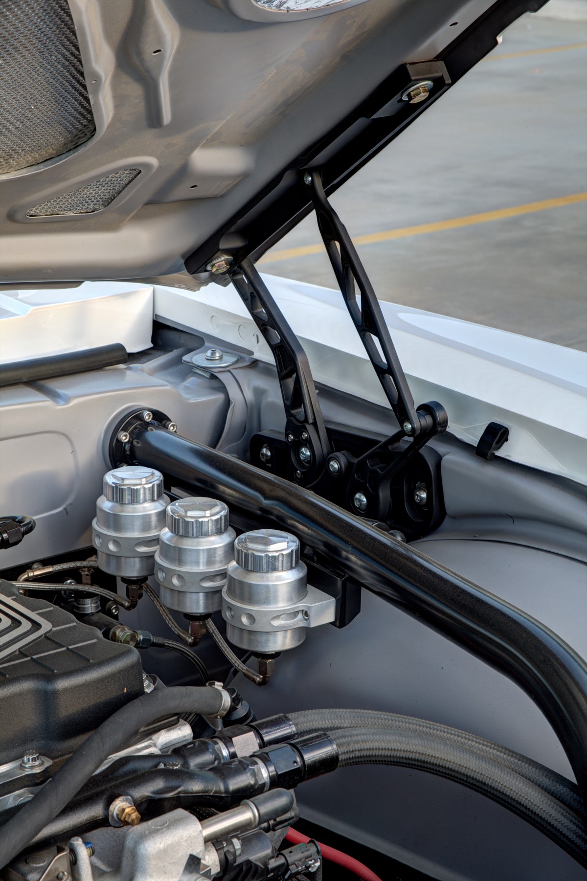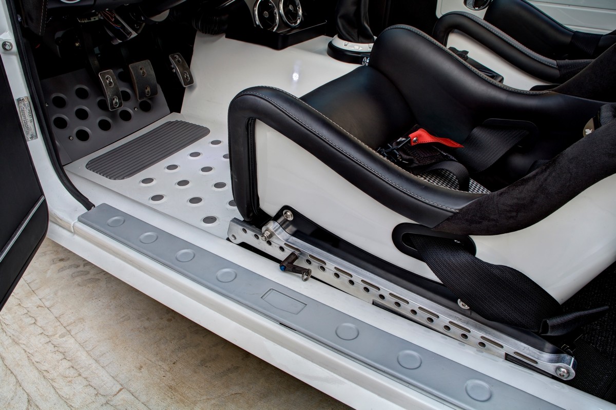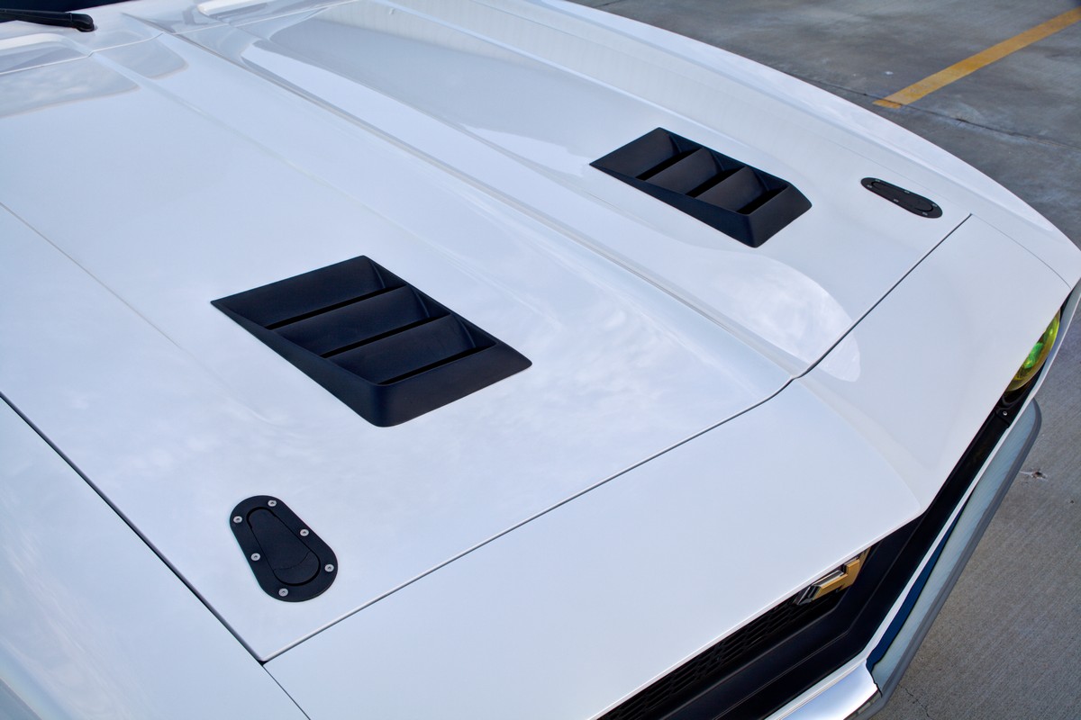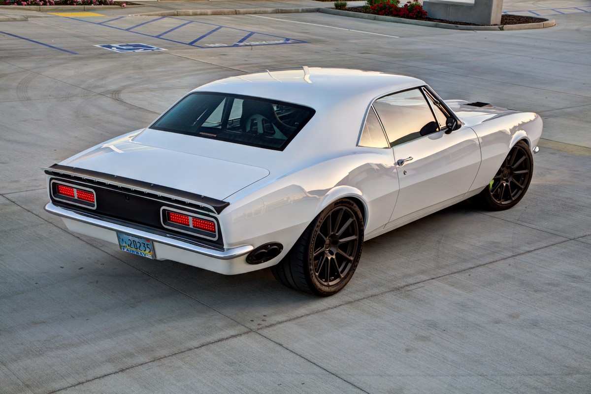 The Camaro’s front grille was custom-made, and the lower front valance was extended, not only for a distinctive appearance but also to accommodate a larger diameter fog light. The body was sprayed in Henrich’s favorite PPG Summit white paint, ensuring the car’s appearance was as stunning as its performance.
