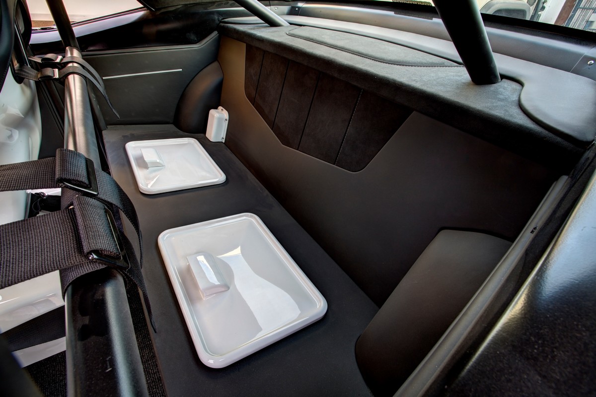 The LT4 engine makes 640HP and 630 lb-ft. of torque right out of the box. Backing the powerhouse is a T56 transmission which offers buttery smooth shifts and double overdrives. All those ponies travel through a Gear FX Ford 9″ differential while a Rick’s Fuel Tank feeds the beast.