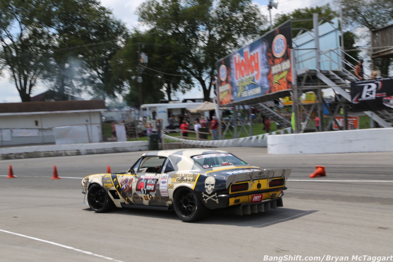 With a $500 gift certificate from Holley on the line, the drivers were collected together and prepared for battle. Mike DuSold, Brian Finch, Darren Dternes, Chris Smith, JB Granger, Brian Johnson, Allan Schonmaker, and Robby Unser all appeared. And yes, that’s eight names…Unser, an overachiever, brought two cars to play with! With only the winner coming away with the prize, competition was going to be fierce, and with a puddle right in the middle of a fast section of the track, things were going to be interesting.The winner of the deal was DuSold, whose monster Camaro’s four-figure power level proved to be advantageous at the right time!