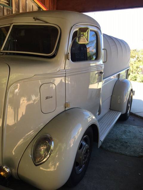 Beautifully restored 1939 Ford COE, 350 Chevy Engine/400 Transmission on a 1985 104″ wheel base school bus chassis. Heater/Air Conditioner (needs to be hooked up). Nice interior with seat belts. This Truck has won many awards and has been featured in several automotive magazines and newspapers. Most recently it won first prize in the Steve McQueen Boys Republic fund raiser car show.