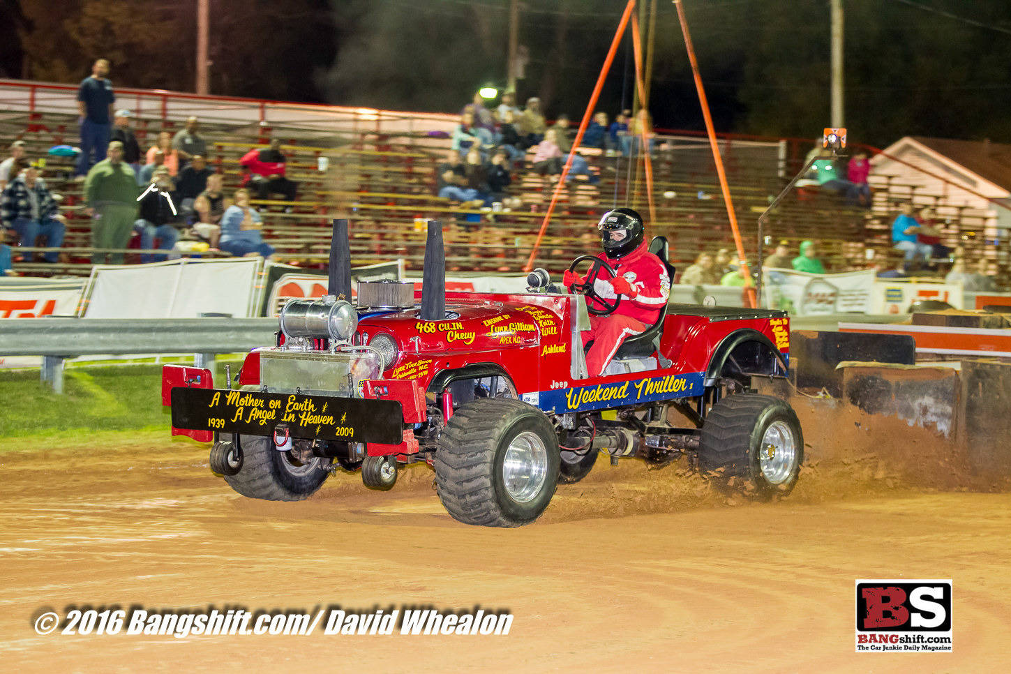 Nestled between 2 baseball parks this first hook of the season on that 400’ stretch of Carolina red clay between School and W Ashley St. has been touted as the place to be for some of the most legendary pullers in the country. And this year’s 40th edition was nothing but pure excitement. Despite the local weekend weather forecasts calling out that 4 letter word that dooms most racing events, thousands of fans packed the house regardless of the threat. The weather held off and the show went on. With a strong field of Minis, Modifieds, 2 Wheel Drives, 4 Wheel Drives, Super Stocks, Super Farms, and LT 4 Wheel Drives the ground pounded well into both the nights. This countrified down home form of racing is nothing but pure Americana and definitely worth a trip to downeast NC for some of the best BBQ and pullin’ action on the east coast.