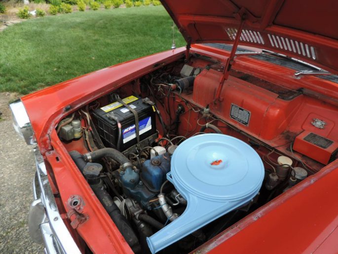 E-1 original 1200-cc. 60-hp. four cylinder, two-bbl., starts first time and runs smoothly. Doubt engine ever opened since new. Unique 4-speed on steering column!