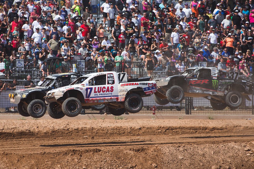 (Photos credit: Lucas Oil Off Road Racing Series) – The second race of the early Lucas Oil Off Road Racing Series season was held at Wild Horse Pass Raceway in Arizona last weekend and we have all the high flying action and results for you right here. Like going to the drag races, the off road racing scene is filled with an awesome variety of equipment that ranges from buggies and small junior “karts” to Pro Lite and Pro 2 unlimited trucks. Obviously the animals in the room are the classes with the word “unlimited” at the end and these are the vehicles that generate lots of the incredible photos you will see in the gallery below. From flying through the air and landing on each other to creating passing lanes that even angels would fear to tread on, the racers in the Lucas Oil Off Road Racing Series are some of the best in the world at what they do.