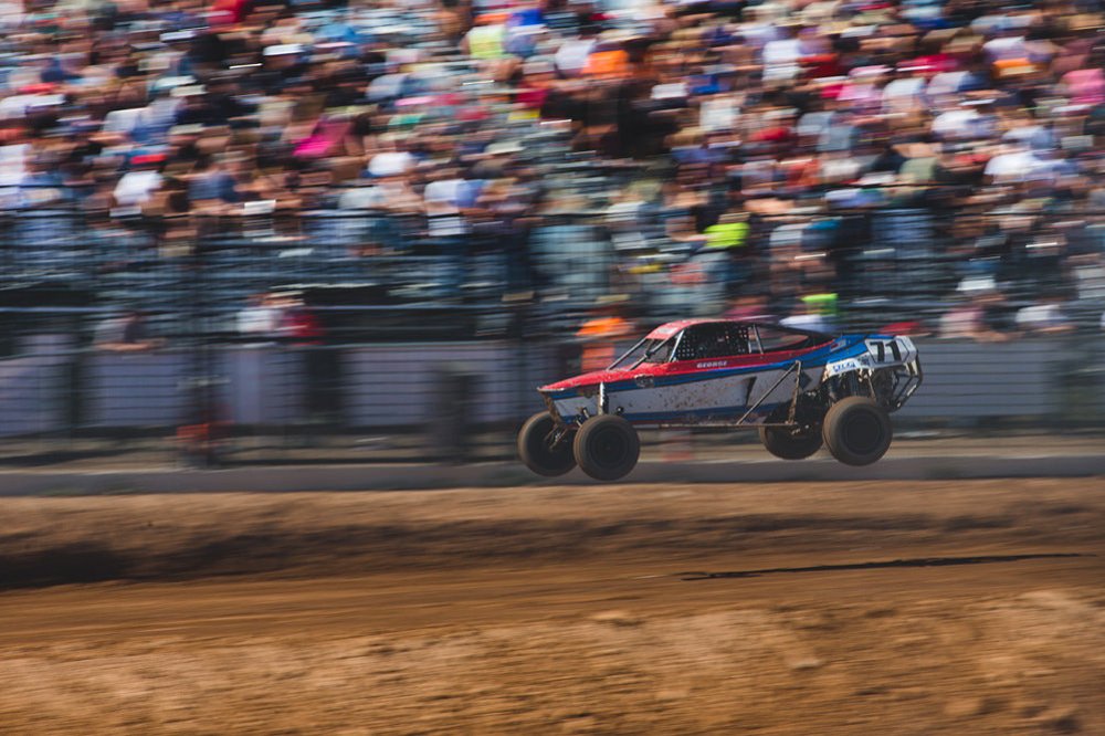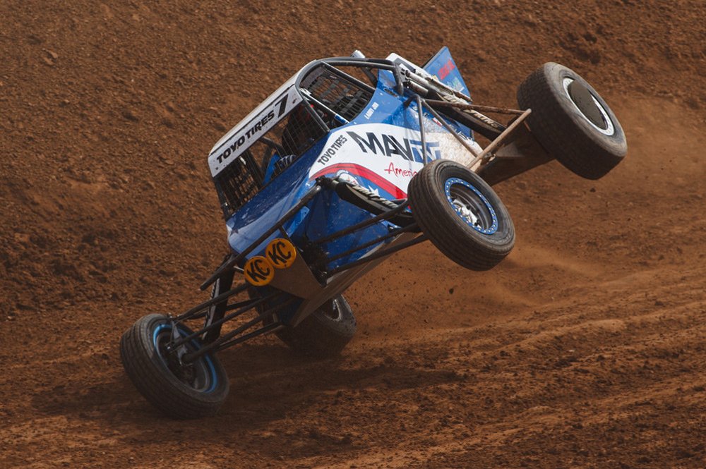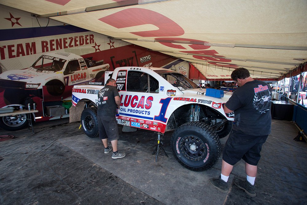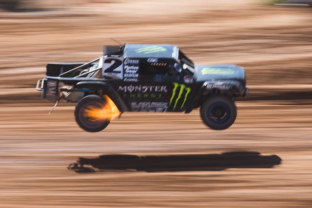 The “never say die” spirit of this type of racing is embodied in the photo below where you’ll see a truck completely airborne with no tire on the passenger rear side. No doubt that the driver finished the race with the hammer down, driving as fast as they could, body panels hanging off, tire gone, engine screaming away because that is how they roll in this deal. You only stop when the machine is literally inoperable. Only being down one tire is like a flesh wound.