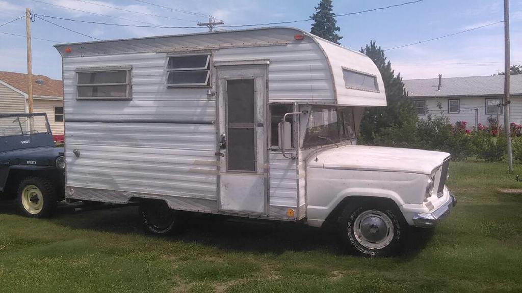 It is not often that I get the chance to scoop Chad on a classic camper because the man’s radar on such things is always firing but today I did. This weird little 1963 Jeep camper is an interesting combo of camper body and Jeep pickup truck mashed together to make a house on wheels the likes of which no one else a the campground will have. You’ll never win a drag race as the thing is powered by the “Tornado” six but that’s OK, you’ll arrive in style and have the most vertical windshield in the place.