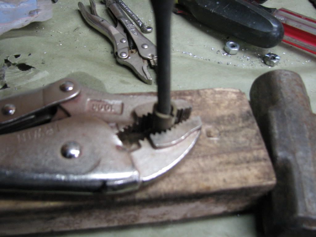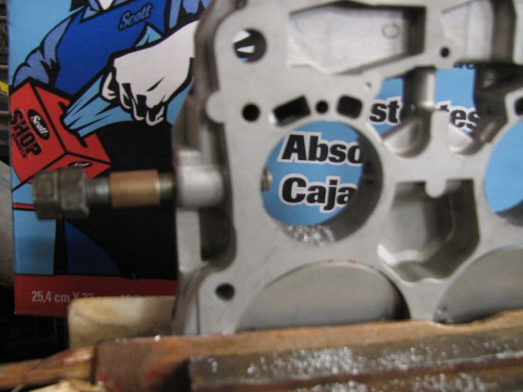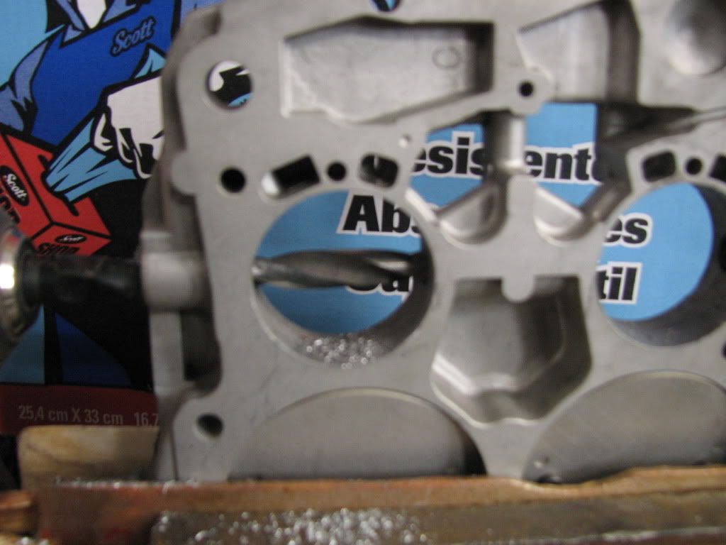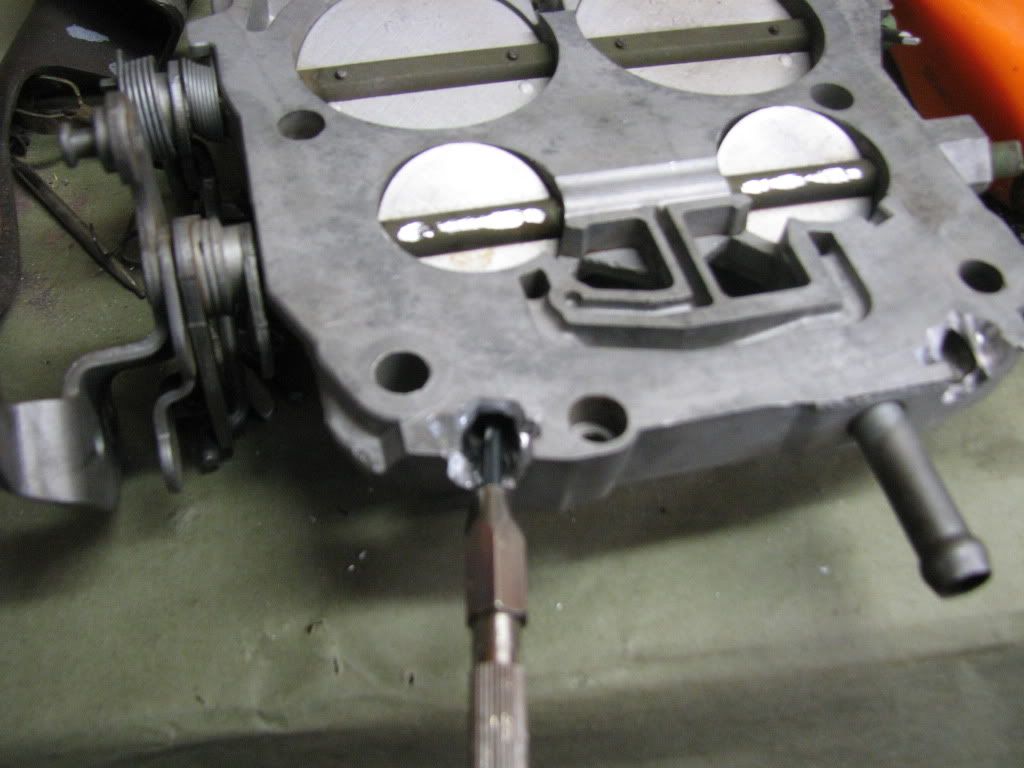 Then after removing the spring holding the linkage to the secondary shaft, you can pull the primary out, then you drill the bores with the special stepped bit.