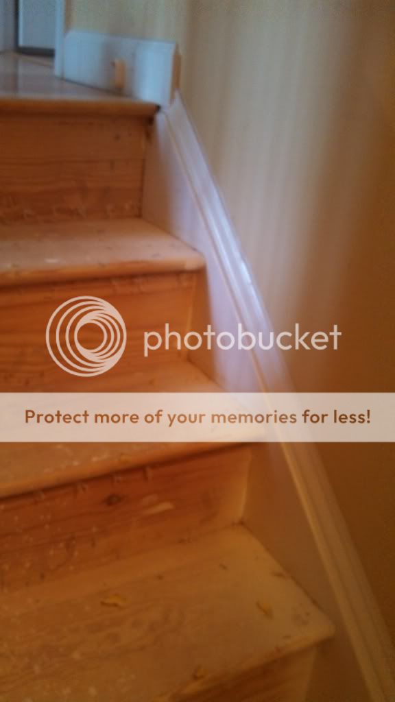 Now that I have the carpet up it looks like the base board is on top of the old treads.