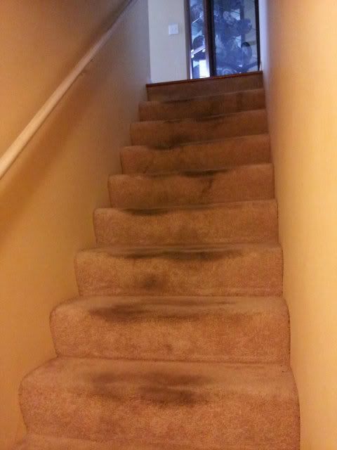 Getting rid of the carpet in the house. I bought prestained treads.