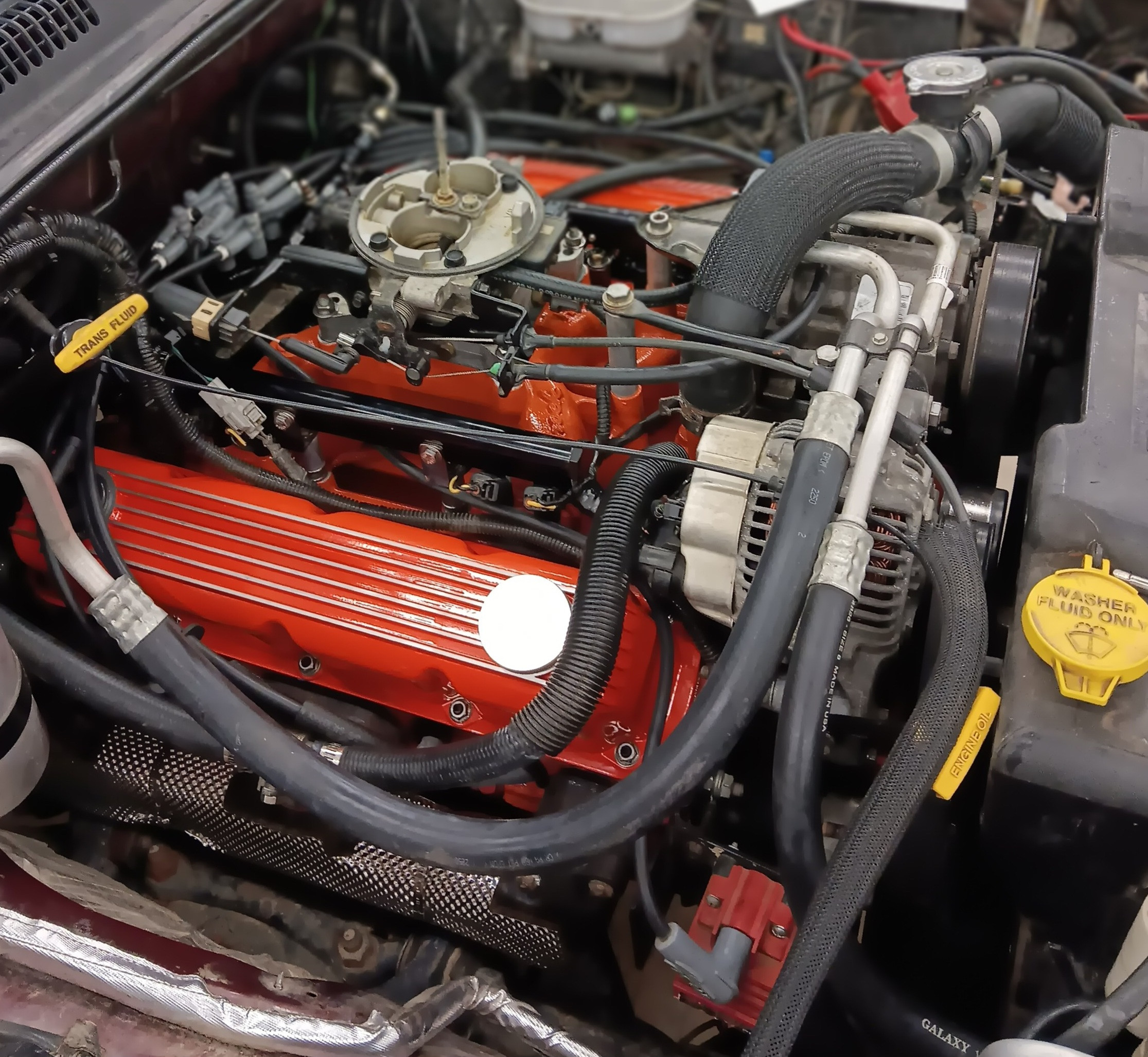 The block was sent to the machine shop and bored .020 over. And I painted it Hemi orange.