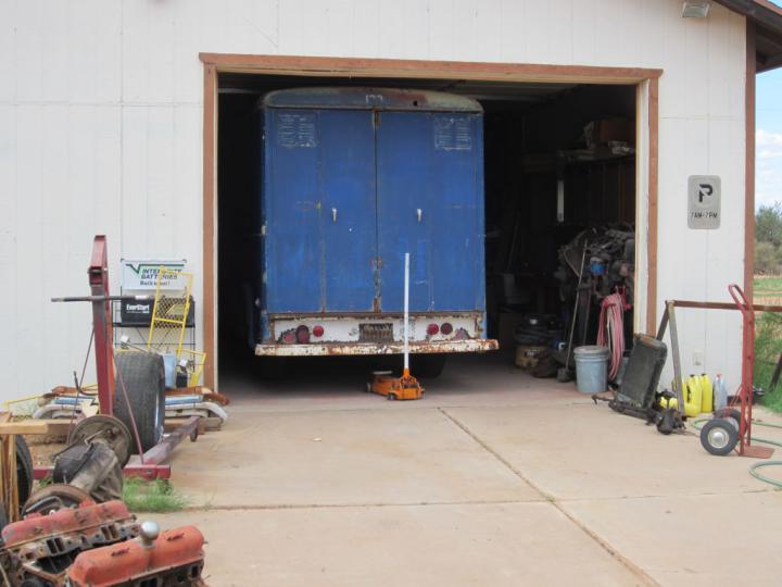 A guy on the HAMB was giving away his vehicles...I ended up with the step van. It's a 1955 Chevy (second series) chassis, with an American Body Works body. The body is fiberglass on the front, has steel ribs covered with aluminum for the top and sides, and a wood floor in back.